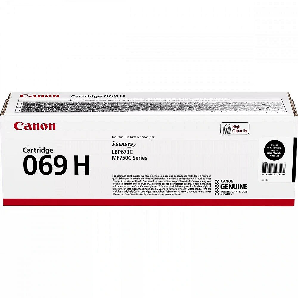 Description - Toner CLBP 069H 5098C002 black Ensure optimum print quality with genuine Canon toner. Print more with the high-yield black toner cartridge (up to 7600 pages). Comply with RoHS directive (2011/65/EU) and its amendments including (2015/863/EU) and other RoHS regulations in countries/regions outside the EU, meaning materials used are less hazardous to the environment. Return toner cartridges for reuse or recycling free of charge, simply and with a sense of environmental responsibility.