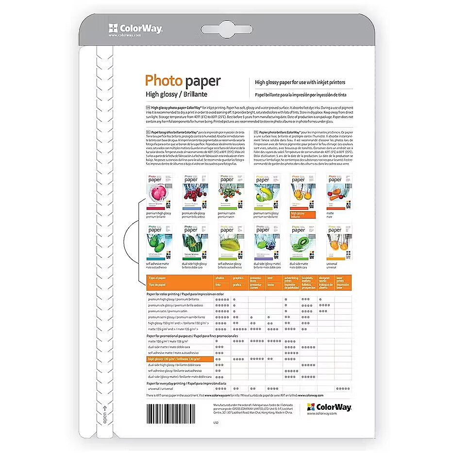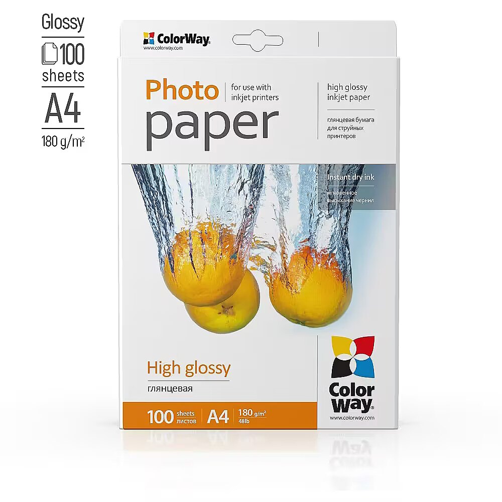 Name - ColorWay Photo Paper, 100 sheets | 180 g/m² | A4 | High Glossy