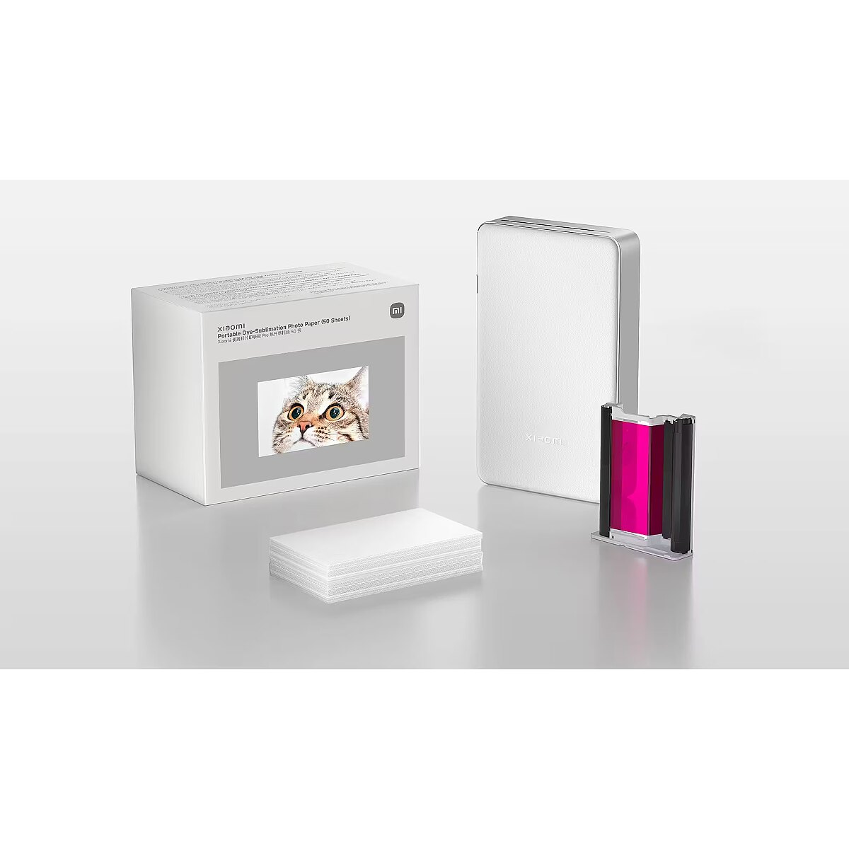 description_short_en - Photo paper for portable photo printer For Xiaomi Portable Photo Printer Pro Photo size: 5 × 7.6 cm Dye sublimation printing technology Pack of 50 sheets and 5 ink cartridges