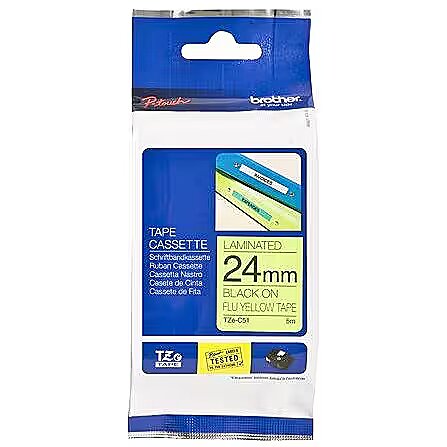 Description - BROTHER TZE-C51 BLACK ON FLUORESCENT YELLOW LABELLING TAPE ? 24MM WIDE