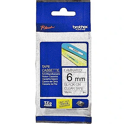 Name - Brother | TZe-111 Laminated Tape | Black on Clear | TZ | 8 m | 6 cm
