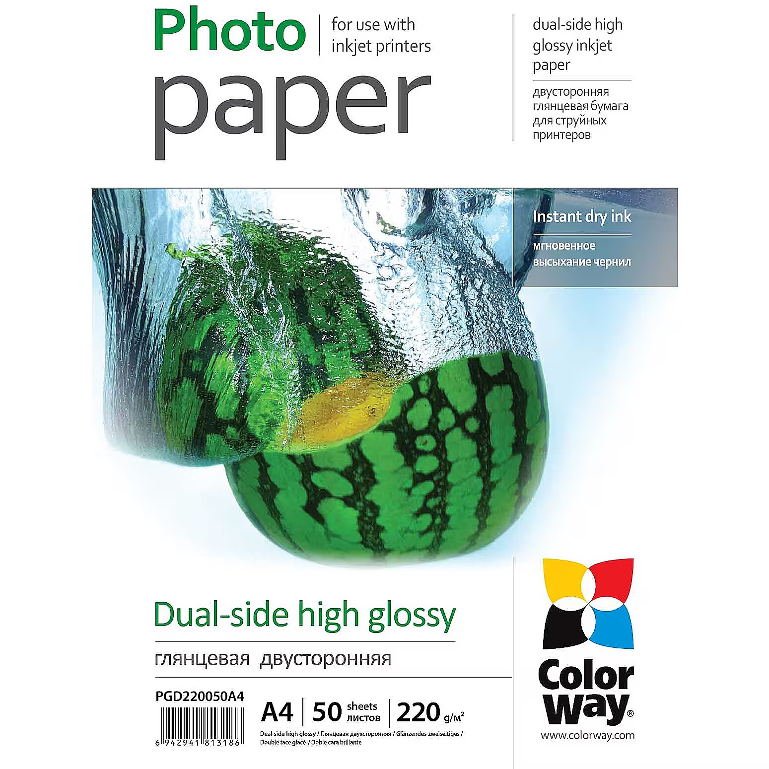 ColorWay High Glossy dual-side Photo Paper, 50 sheets, A4, 220 g/m²
