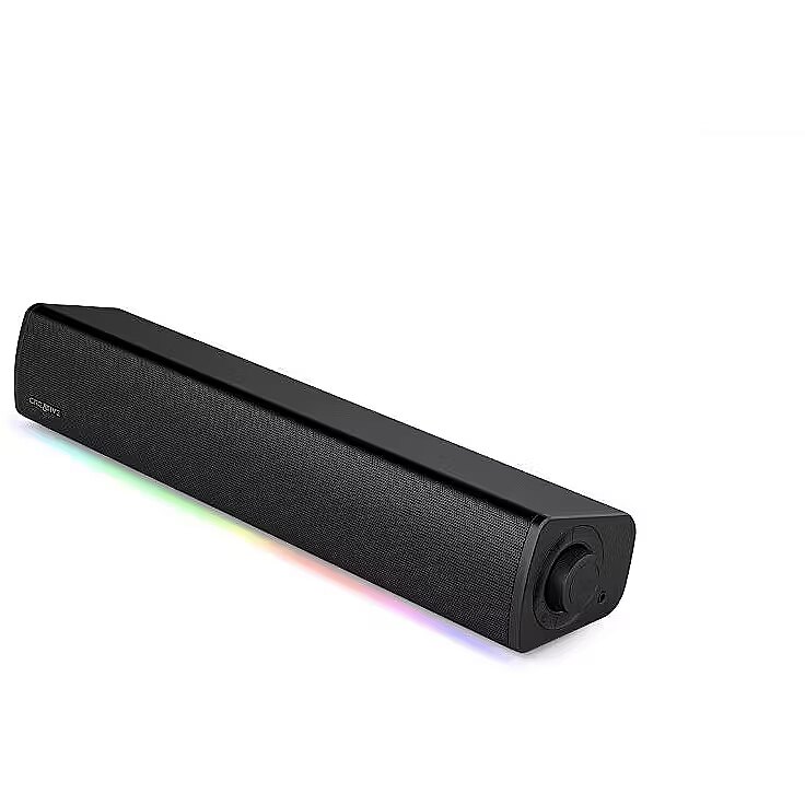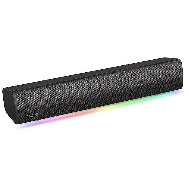 Description - Sound Blaster GS3 COMPACT RGB GAMING SOUNDBAR WITH SUPERWIDE TECHNOLOGY The compact Sound Blaster GS3 speaker is a step forward from your desktop or laptop's built-in speakers, offering an immersive soundstage with punchy bass that lives up to its size. Your audio experience will also come to life with SuperWide technology - designed for the best movie watching and gaming experience. LIGHT YOUR SOUND The soundbar offers multiple advanced lighting settings, Chasers, Aurora, Peak Meter, Glowing, Wave and Cycle, perfect for setting the right mood. IMMERSIVE SOUND Featuring powerful full-range racetrack drivers and a built-in port horn on the back of the soundbar, the Sound Blaster GS3 delivers consistent sound and great bass! With 24W peak power and SuperWide technology, the Sound Blaster GS3 pushes the boundaries of conventional acoustic design laws by requiring enormous acoustic power that is not possible for a speaker of this size. FLEXIBLE CONNECTIVITY Sound Blaster GS3 can be connected to your computer, game console and mobile devices in several ways. These options range from USB-C, AUX-in cable, and wireless Bluetooth 5.4! You can also enjoy high-quality sound without disturbing others when you connect your headphones directly to the soundbar via the headphone output port.