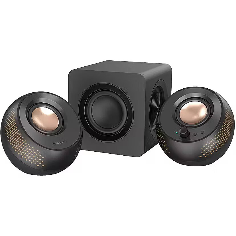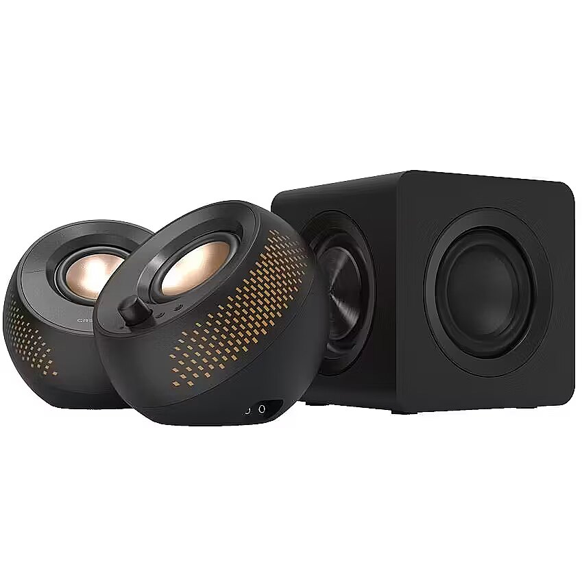Dzięki minimalistycznej, czarnej, kulistej konstrukcji z matowym wykończeniem i konfigurowalnym podświetleniem RGB, Creative Pebble X Plus wzbogaci każdą konfigurację biurkową, podnosząc ogólną atrakcyjność wizualną.
