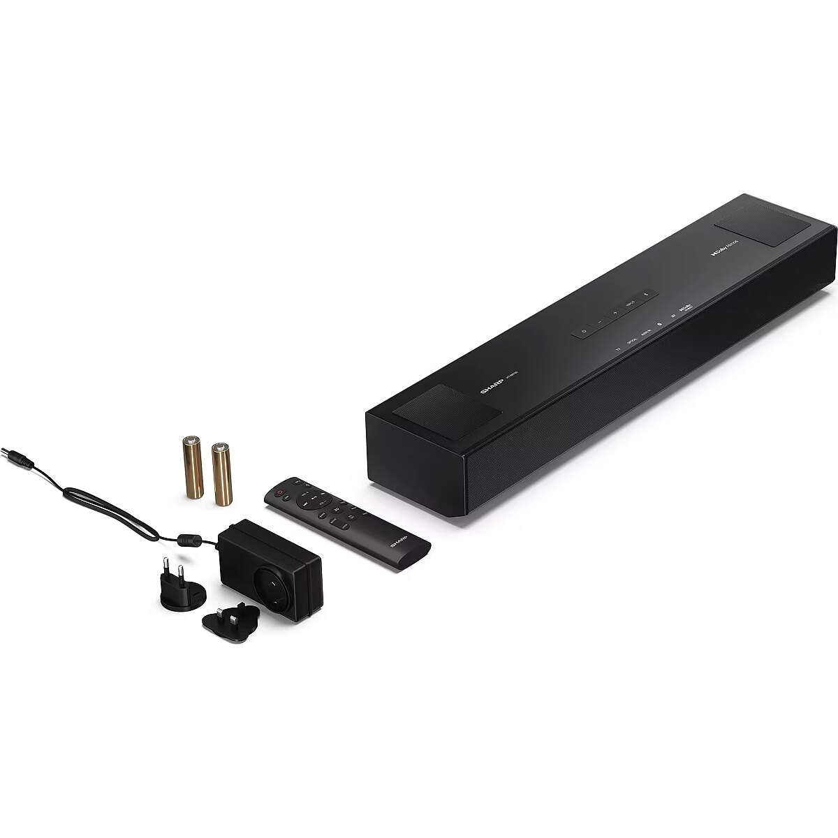 LongDesc - Compact soundbar with up-firing speakers, experience Dolby Atmos® 3D surround sound in smaller living spaces.Dolby AtmosDive into sound reimagined with Dolby Atmos! Revealing depth, clarity, and detail like never before, Dolby Atmos is a sound experience you can feel all around you.Dolby Atmos content is available on selected broadcast and streaming services or via external devices connected by HDMI like a Dolby Atmos compatible games console or Blu-ray player.BluetoothSimple, fast, flexible: Connect your Bluetooth compatible smartphone, tablet or PC to your Sharp device to stream audio wirelessly.eARCeARC (enhanced Audio Return Channel) allows you to use your TV as a hub for external devices and send audio from your TV to your soundbar using a single HDMI cable. With increased bandwidth (vs. ARC) it can support a wider range of audio formats as well as expanded features such as automatically correcting processor delays so that your audio and video always match, as well as lip sync correction. CEC (Consumer Electronics Control) is a convenient feature that allows your CEC compatible TVs remote to control key functions of the soundbar like standby, volume and mute.EQ PresetsEqualiser presets adjust the sound profile to better suit the genre of TV programme you are viewing. Choose from: Movie, Music, Voice, Night and Off. Adjusting the bass and treble allows you to create your own customised EQ preset.Compact yet powerful soundA compact size but powerful sound means this soundbar is suitable for small to medium sized spaces.Dolby VirtualizerDolby Surround Virtualizer uses smart algorithms to analyse the audio source and adds virtual channels to make it seem like the sound is coming from different directions. This creates a more immersive and spacious audio experience, especially useful when you can't have a full surround sound speaker setup.