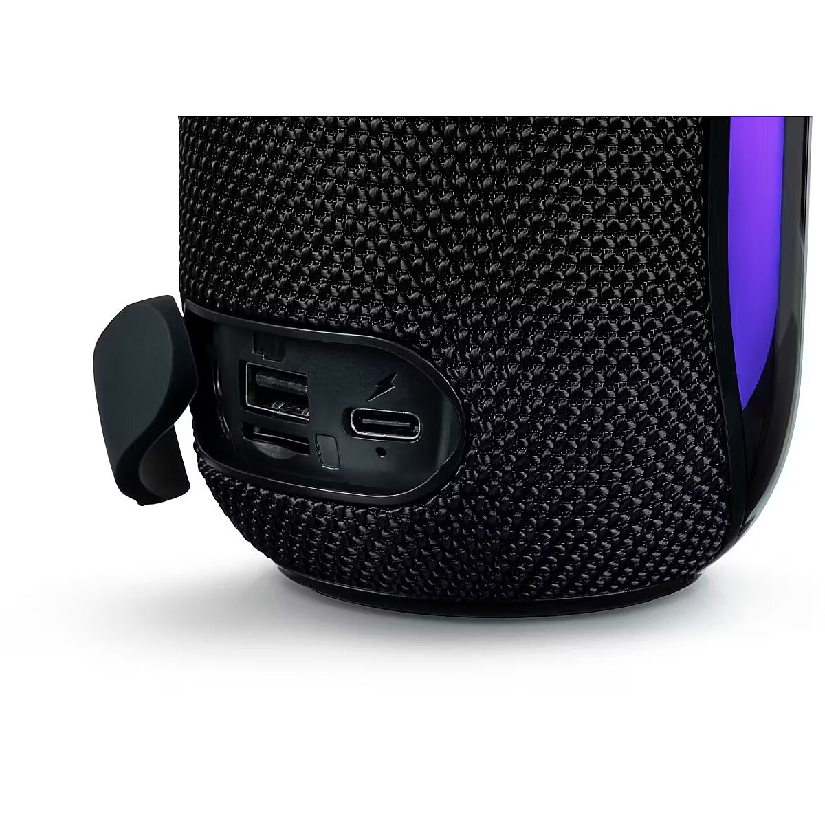 Dane techniczne: Wyposażenie dodatkowe - Materiałowy haczyk do przenoszenia lub zawieszenia głośnika.Odtwarzanie z USB.