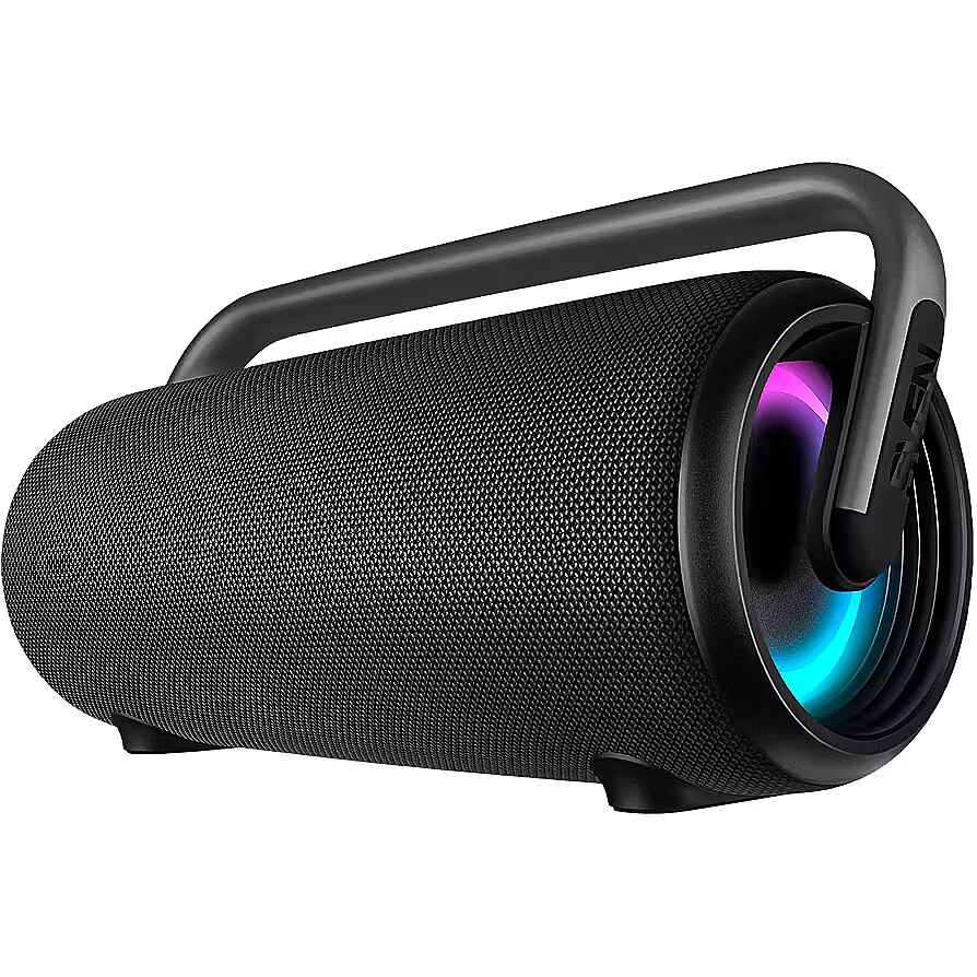 ProductDescription - Portable speaker SVEN PS-395, black, power output 80W (RMS), TWS, Bluetooth, RGB backlight, Waterproof (IPx5), USB, Battery life – up to 20 hours