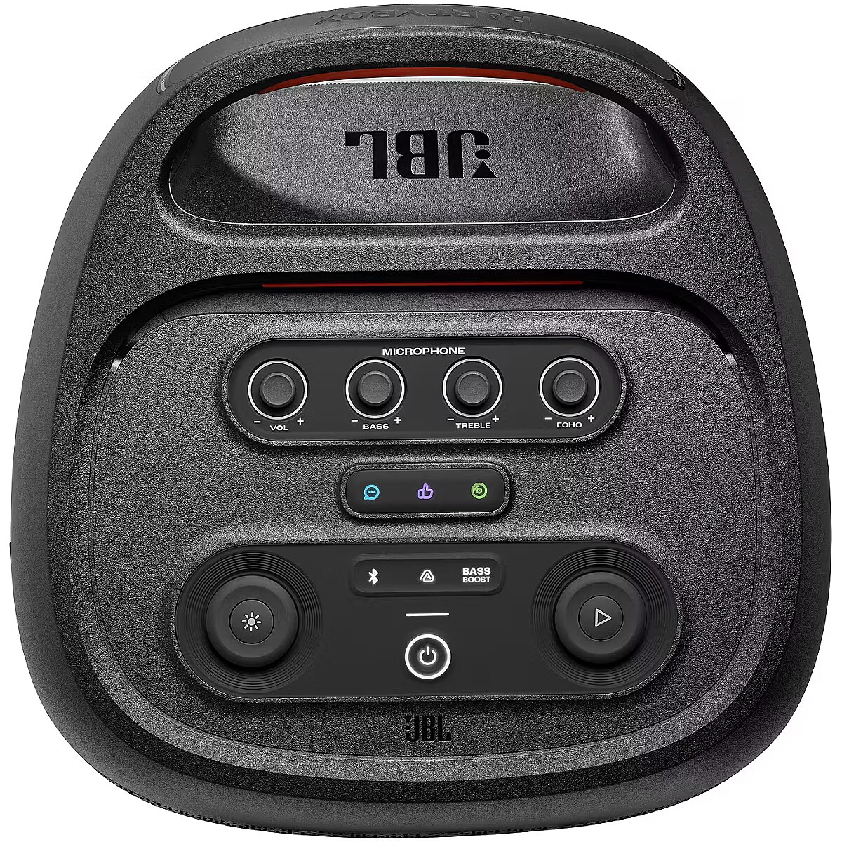 • 800 W JBL Pro Sound ar dziļu basu• Futūristisks gaismu šovs sinhronizācijā ar mūziku• Līdz 15 h darbības laiks ar akumulatoru (nopērkams atsevišķi)• IPX4 ūdensizturība iekštelpu un āra ballītēm• Riteņi un ērts rokturis ērtai pārvietošanai