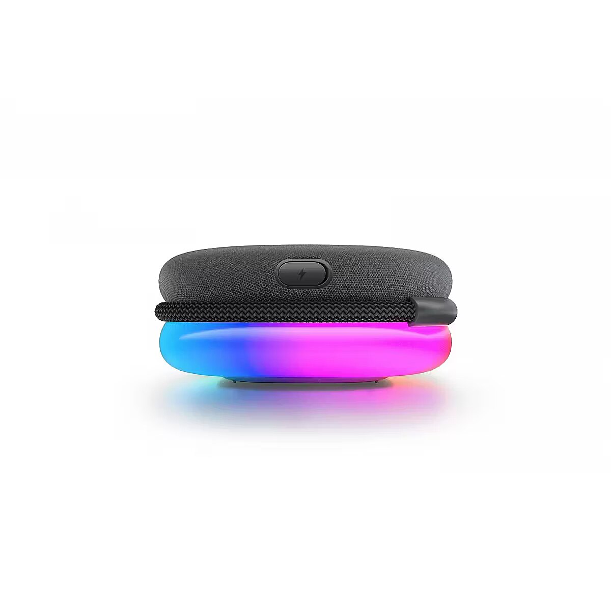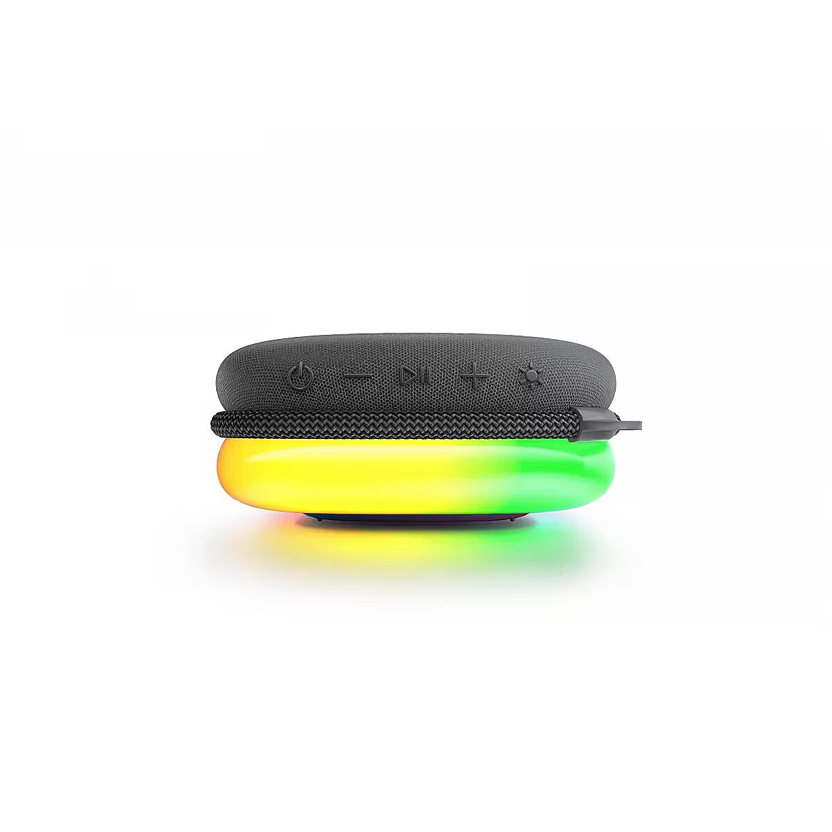 Ten wspaniały głośnik Bluetooth rozświetli każde pomieszczenie. Wybierz jeden z trzech wielokolorowych trybów światła dla dodania nastroju lub delikatne światło nocne na koniec długiego dnia. Dołączona smycz ułatwia przenoszenie głośnika.