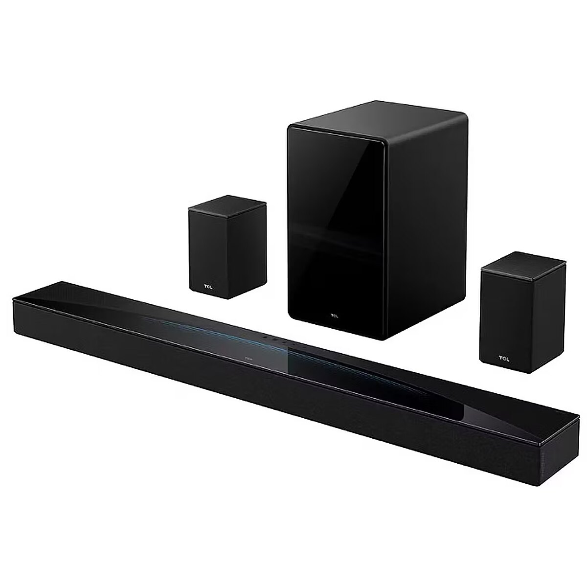 Summary - TCL Q Q85H Class 7.1.4 Channel Sound Bar with Dolby Atmos, Wireless Subwoofwer, and Wireless Surround Speakers. Audio output channels: 7.1.4 channels, RMS rated power: 510 W, Audio decoders: DTS-HD Master Audio, DTS:X, Dolby Atmos, Dolby Audio, Dolby Digital, Dolby Digital Plus, Dolby.... Soundbar speaker RMS power: 30 W, Woofer diameter (imperial): 20.3 cm (8"). Subwoofer type: Active subwoofer, Subwoofer connectivity: Wireless, Subwoofer RMS power: 180 W. Product colour: Titanium, Colour name: Dark titanium, High Dynamic Range (HDR) technology: Dolby Vision. Connectivity technology: Wired & Wireless, Bluetooth codec: A2DP, AVRCP, SBC, AAC, Wi-Fi standards: 802.11a, Wi-Fi 5 (802.11ac), 802.11b, 802.11g, Wi-Fi 4 (802.11n)