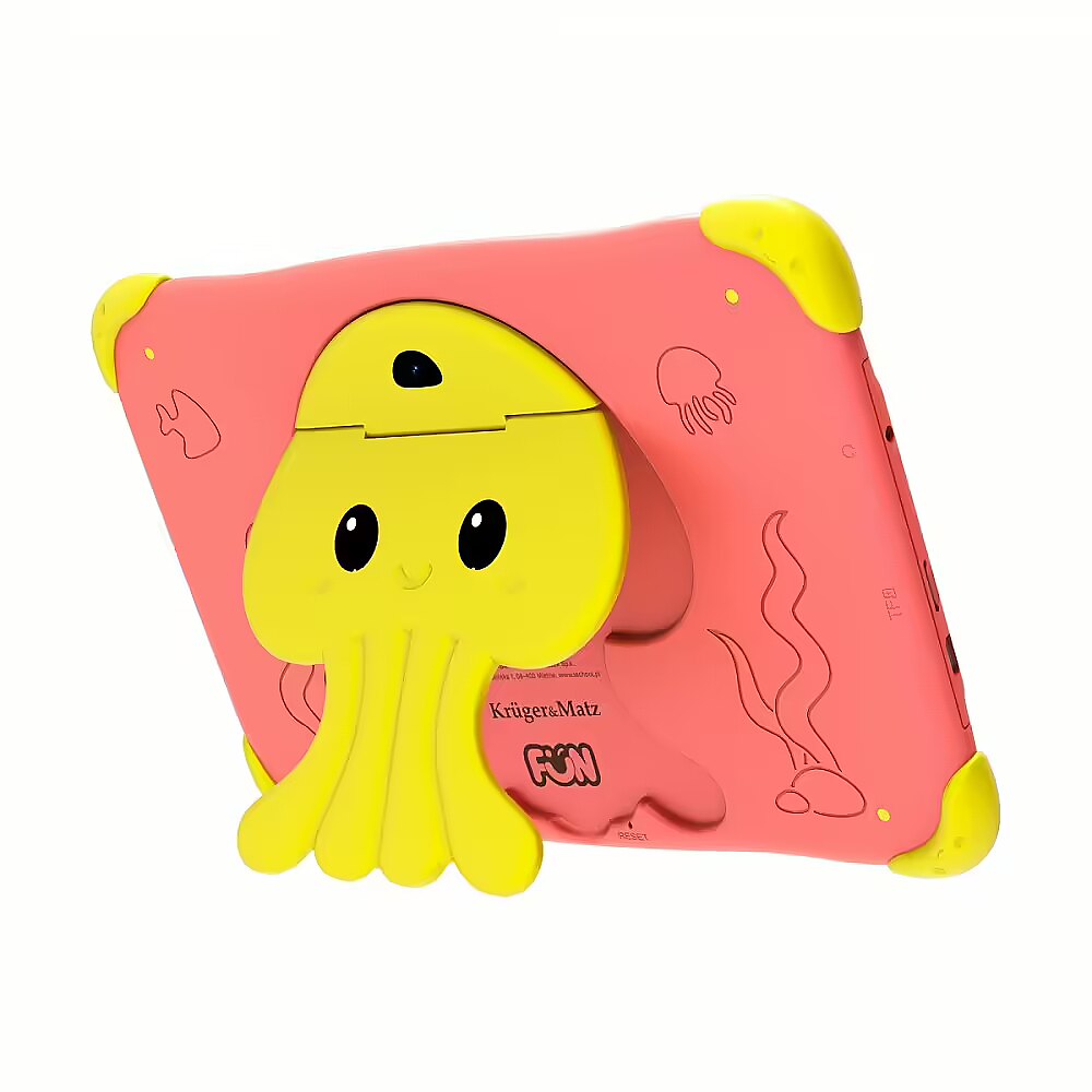 Description - Children's Tablet FUN 808 Are you looking for a device that will give your child creative opportunities for learning and entertainment? The Kruger&Matz FUN 808 children's tablet was created with young explorers in mind, providing them with safe and interactive experiences. Big screen, great possibilities FUN 808 is equipped with an 8-inch screen. Due to its dimensions, it will be the perfect tablet for a 5, 6-year-old or younger child, which will provide an excellent space for play, learning and creativity. Thanks to its functionality, your child can freely explore the virtual world, browse books, draw, play games and discover new things! With safe use in mind Tablets for children should stand out not only with a solid construction, but also with an interesting design that will catch the eye from a distance. With this in mind, the colorful casing of the Kruger&Matz FUN 808 tablet is equipped with rubber corners that provide protection against accidental falls and shocks. Practical stand The advantage of the FUN 808 children's tablet is the stand, which provides stability and comfort in every situation. Thanks to it, your child can freely use the device, including watching movies or playing games in the most suitable position for them. Learning through play Let your child enjoy creative play. Applications available at the start such as Kids Games, Kids Park, Math Kids, iDraw are an ideal way to develop logical thinking, creativity, mathematics and drawing skills. You can also download additional applications from the Play store at any time. Let important moments remain forever The tablet for children will also allow them to capture their favorite moments and discover the art of photography. Two built-in cameras are responsible for good quality photos in the FUN 808 model - a front with a resolution of 0.3 Mpix and a rear 2 Mpix. Two speakers The Kruger&Matz FUN tablet has been equipped with two speakers that will provide very good sound. This makes watching movies or listening to children's music a real pleasure. Android 13 system The Android 13 operating system in the FUN 808 tablet ensures smooth operation, quick access to interesting applications and a safe environment in which your child can freely learn through play. Tablet with a large battery Are you wondering which tablet will be the best for your child? One that will provide them with long hours of fun, learning and creativity without the need for frequent charging. The 4000 mAh battery used in the FUN 808 is a guarantee of this. A selection tailored to your needs Kruger & Matz offers tablets for children in three sizes - 7", 8" and 10". Thanks to this, you will find a device tailored to the preferences and needs of your child.