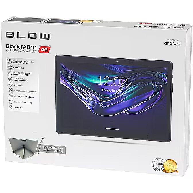 Description - Blow BlackTAB10 Lekki i smukły tablet Blow z 10-calowym ekranem IPS (1920x1200), 8-rdzeniowym procesorem i 4 GB RAM to idealne urządzenie do pracy, nauki i rozrywki. Obsługuje 4G, Wi-Fi Dual Band, Bluetooth 4.2 i ma kamery 5 MP + 13 MP, świetne do wideokonferencji. Bateria 8000 mAh, GPS i USB-C zapewniają wygodę użytkowania w każdej sytuacji. System Android 13 gwarantuje płynną pracę.