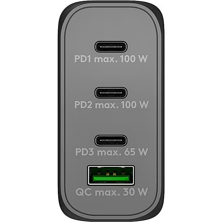 Name - goobay USB-C PD multiport quick charger 100 watts (black, 1x USB-A QC, 3x USB-C PD, GaN technology)