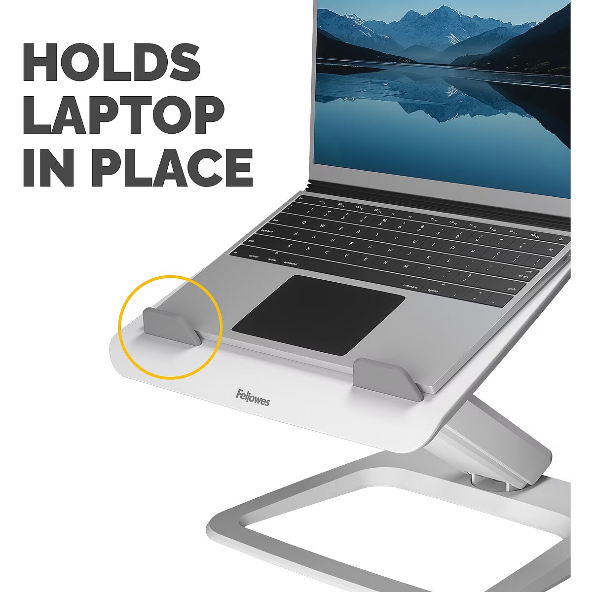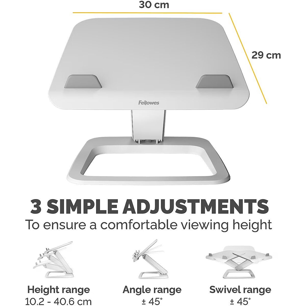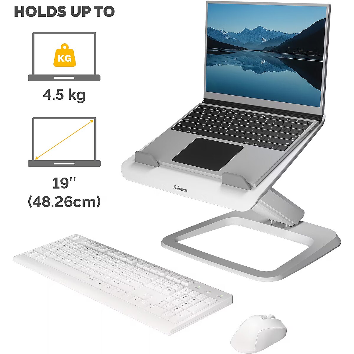 LongProductName - Fellowes Laptop Stand for Desk - Hana LT Laptop Stand for the Home and Office - Adjustable Laptop Stand with 3 Height Adjustments - Max Monitor Size 19", Max Weight 4.5KG - White