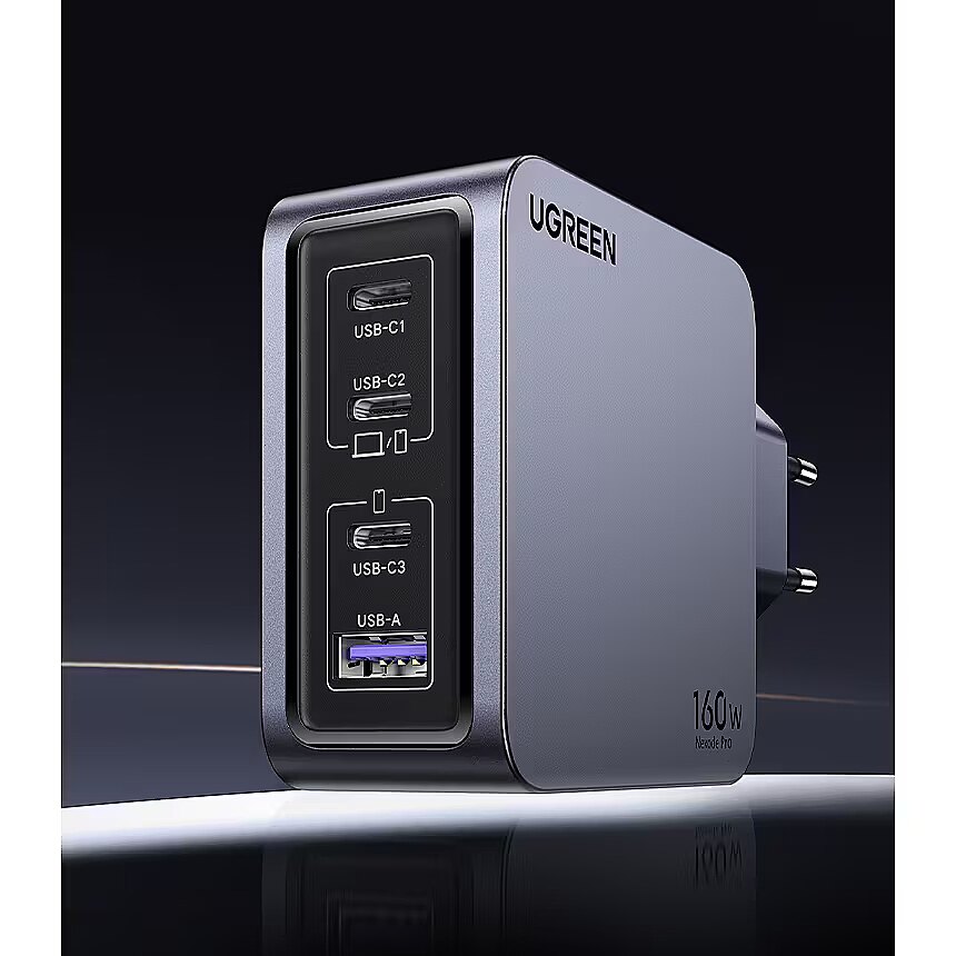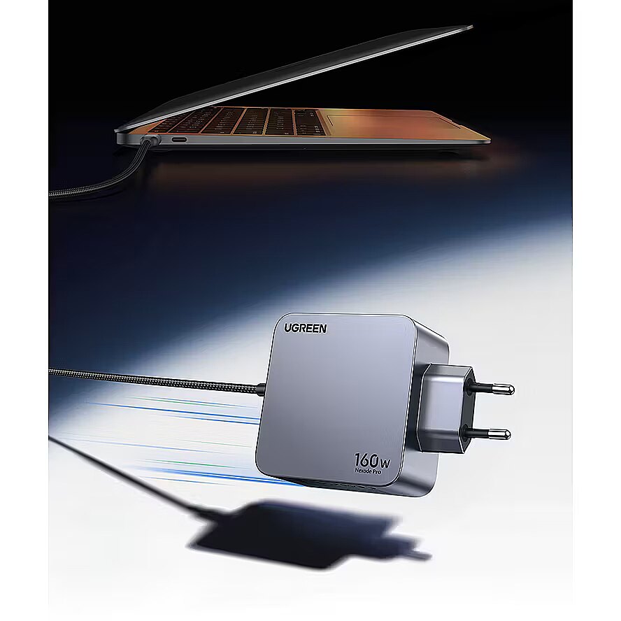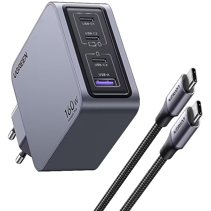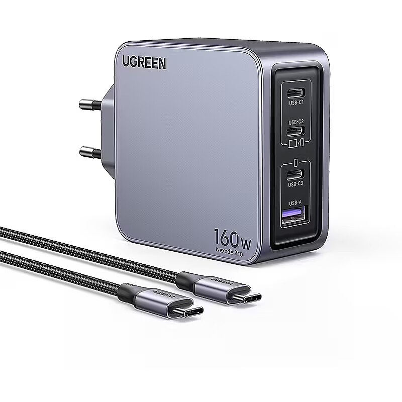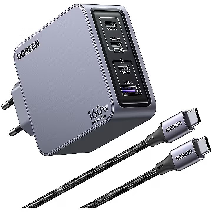 Title - Ugreen Nexode Pro 160W GaN Charger with USB-C Cable Universal Black, Grey AC Fast charging Indoor