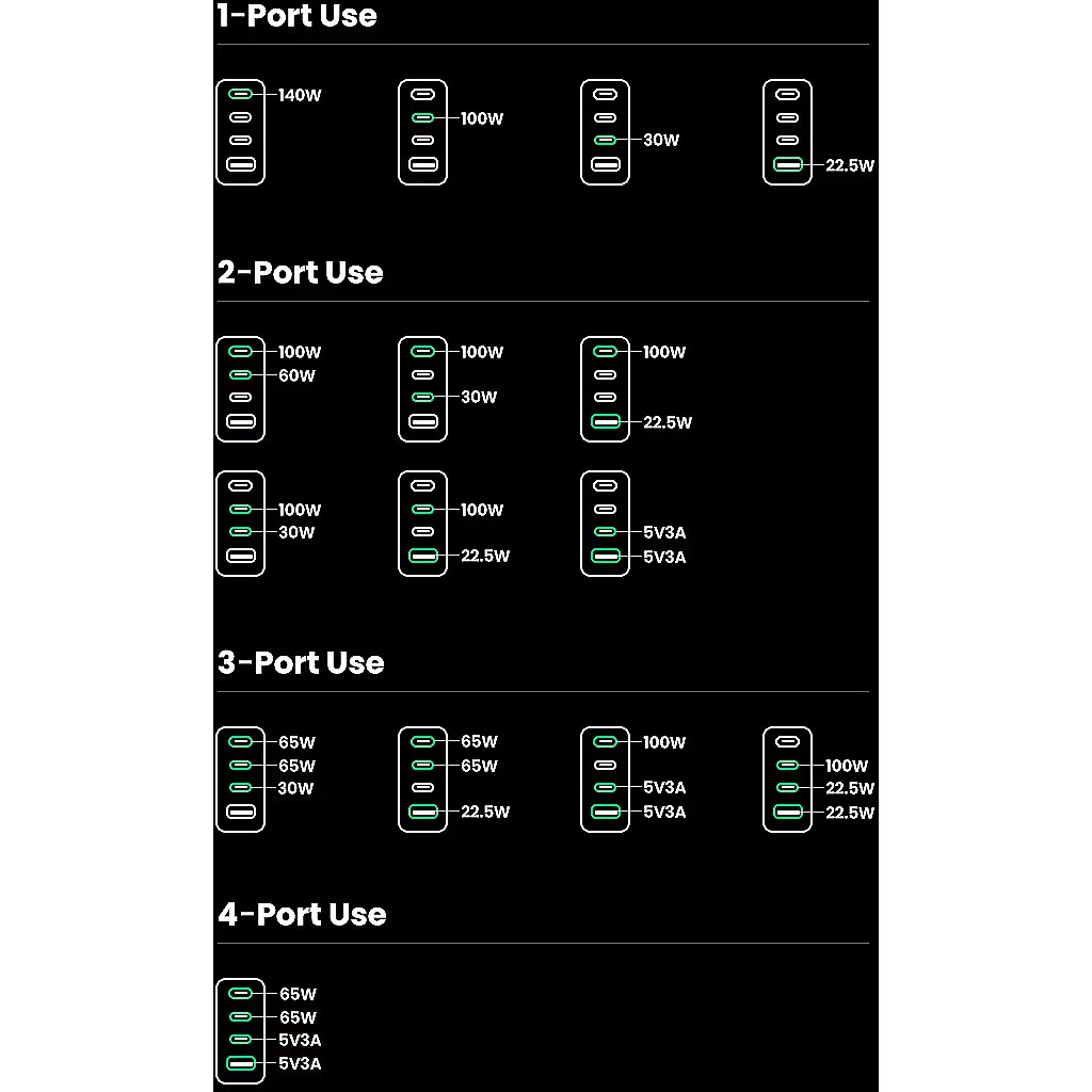 LongDesc - 140 watts of single-port charging power can charge a 16-inch MacBook Pro from 0-86% in just 60 minutes. Cutting-edge Airpyra technology, combined with support for GaNInfinity™ chips, delivers 160 watts of power and multiple charging ports in a palm-sized package.21% smaller than Apple's 140W charger. Millisecond temperature sensing protects against overheating, overloading and overcurrent.The integrated Ugreen Thermal Guard™ system monitors temperature changes in real time and intelligently distributes power to devices to ensure a full, fast charge without compromising battery longevity.Charges up to 4 devices, from IoT devices to MacBook Pros.The Nexode Pro family of chargers is compatible with modern smartphones, tablets and laptops and supports PD/QC/SCP/AFC/PPS and 45W Samsung Super Fast Charging 2.0 fast charging protocols.