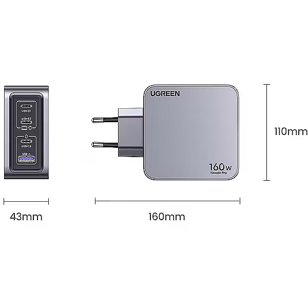 Name - Ugreen Nexode Pro 160W, GaN, USB + 3x USB-C szara