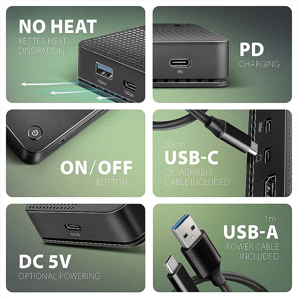 Compatible with Thunderbolt 3/4, USB 10Gbps, USB 5Gbps. Input (power supply):