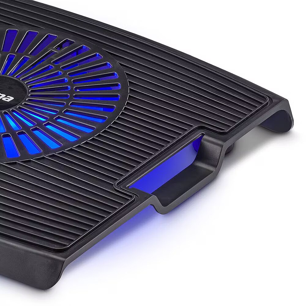 Functionality: Blue LED fan Sturdy construction with non-slip rubber feet USB-A power supply Low power consumption Quiet fan operation Universal for laptops up to 15.6 inches