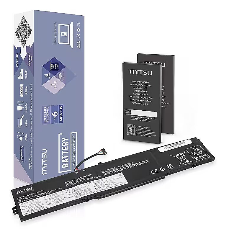 MITSU offers: High-quality, proven, eco-friendly Class A lithium-ion cells, Actual declared capacity, Significantly slower decline in nominal capacity compared to other cheaper alternatives, Low susceptibility to self-discharge, No memory effect, Factory protection against overcharge and deep discharge, as well as protection against overvoltage (OVP), overheating (OTP), short circuit (SCP), and overcurrent (OCP), Reliable and long-lasting charging cycle life, 6-stage quality control. By purchasing this laptop battery, you can also be sure that you're also caring for the environment. The manufacturer works closely with organizations that promote environmental education, supporting selective waste collection and maximum waste recovery.