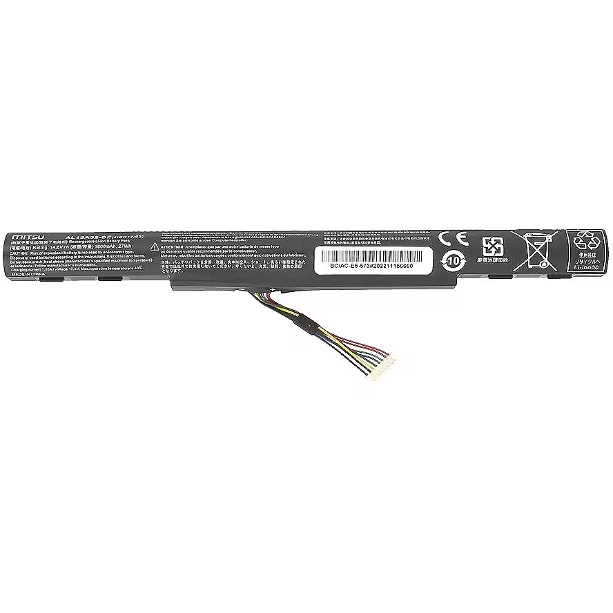 Description - Wysoka jakość w rozsądnej cenie, bezpieczeństwo i ekologia to cechy baterii MITSU, które doceniły już tysiące Europejczyków, głównie w Polsce, Czechach i na Słowacji. Jest ona efektem połączenia najlepszych komponentów z dbałością o każdy etap procesu produkcji, wspartą nieustanną kontrolą jakości, a także naciskiem na bezpieczeństwo urządzenia. MITSU to: Wysokiej klasy, sprawdzone, ekologiczne ogniwa litowo-jonowe klasy A, Rzeczywista deklarowana pojemność, Znacznie wolniejszy spadek nominalnej pojemności w porównaniu do innych tańszych zamienników, Niska podatność na samoistne rozładowania, Brak efektu pamięci, Fabryczne zabezpieczenia przed przeładowaniem i głębokim rozładowaniem, a także przed przepięciem OVP, przegrzaniem OTP, zwarciem SCP i przeciążeniem prądowym OCP, Niezawodny i długotrwały czas między kolejnymi cyklami ładowania, 6-stopniowa kontrola jakości. Kupując ten akumulator do laptopa masz także pewność, że jednocześnie dbasz o środowisko naturalne. Producent ściśle współpracuje z organizacjami zajmującymi się szeroko pojętą edukacją ekologiczną, wspierającymi selektywną zbiórkę oraz maksymalny odzysk odpadów. Baterie MITSU to produkty opatrzone certyfikatami CE, ROHS oraz ISO9001 Zamienne z modelami 4ICR17/65 AL15A32 AL15A32 (4ICR17/65) AL15A32-DF KT.00403.025 KT.00403.034 KT.004B3.025 Kompatybilne z Acer seria Aspire E5-422 E5-422G E5-432 E5-432G E5-452 E5-452G E5-472 E5-472G E5-473 E5-473-37XV E5-473-53C0 E5-473-C3A7 E5-473-C6HE E5-473-P3NZ E5-473-POVT E5-473G E5-473G-31N6 E5-473G-3525 E5-473G-36X2 E5-473G-37UG E5-473G-38BZ E5-473G-519T E5-473G-55WJ E5-473G-561X E5-473G-56T8 E5-473G-59L5 E5-473T E5-473TG E5-474 E5-474G E5-491 E5-491G E5-522 E5-522G E5-532 E5-532G E5-532T E5-552 E5-552G E5-572 E5-572G E5-573 E5-573-35JA E5-573-36RP E5-573-3870 E5-573-38F9 E5-573-56RP E5-573-58K7 E5-573-73HD E5-573-78WU E5-573-P0DP E5-573G E5-573G-54G6 E5-573G-557U E5-573G-55YL E5-573G-563Y E5-573G-56AV E5-573G-56P4 E5-573G-582P E5-573G-59BB E5-573G-59LG E5-573G-79W1 E5-573T E5-573T-31B6 E5-573T-57FZ E5-573T-P1LS E5-573TG E5-573TG-32YT E5-573TG-36SR E5-573TG-78KZ E5-574 E5-574-53QS E5-574-53YZ E5-574-55HE E5-574-55I0 E5-574-56NR E5-574-58JM E5-574G E5-574G-50XN E5-574G-52QU E5-574G-53HW E5-574G-54Y2 E5-574G-57T1 E5-574G-57Z1 E5-574G-706Z E5-574G-73I4 E5-574G-75N8 E5-574G-76MV E5-574T E5-574T-5365 E5-574TG E5-574TG-005 E5-574TG-007 E5-722 E5-722-22S8 E5-722-23YQ E5-722-41YM E5-722-49HD E5-722-61TY E5-722-62SD E5-722-68PZ E5-722-89L4 E5-722G E5-722G-4135 E5-722G-61XL E5-722G-6403 E5-722G-66MC E5-722G-819C E5-722G-83DD E5-722G-86B3 E5-752 E5-752G E5-772 E5-772G E5-773 E5-773G ES1-420 ES1-421 ES1-422 F5-521 F5-571 F5-571G F5-571T F5-572 F5-572G K50 V3-574 V3-574G V3-574G-545B V3-574G-5801 V3-574G-59MA V3-574G-75YA V3-574T V3-574T-534M V3-574TG V3-575 V3-575-50TD V3-575-51A0 V3-575-52GE V3-575-57MJ V3-575-72ZK V3-575G V3-575G-5093 V3-575G-52GY V3-575G-53D1 V3-575G-57CN V3-575G-58HX V3-575G-780J V3-575G-786A V3-575G-795J V3-575G-79XK V3-575T V3-575T-51Q8 V3-575T-7008 V3-575TG V3-575TG-55CZ V3-575TG-700T seria Extensa 2510 2510G 2511 2511G 2520 seria TravelMate P2 P248-MG P2 P248-MG-51PC P2 P248-MG-55NQ P248-M P248-M-38Z5 P248-M-39P6 P248-M-509E P248-M-56FH P248-M-56K2 P248-M-57J4 P248-M-76YA P257 P257-M P257-M-329X P257-M-34H2 P257-M-35F9 P257-M-505J P257-M-51DA P257-M-51M3 P257-M-52CA P257-M-52MH P257-M-52ZL P257-M-535Y P257-M-56AX P257-M-58P5 P257-M-59BH P257-M-70P7 P257-M-P32D P257-MG P257-MG-53N0 P257-MG-59PN P257-MG-70RV P258 P258-M P258-M-38KB P258-M-532G P258-M-53Z3 P258-M-5508 P258-M-566N P258-M-P209 P258-MG P258-MG-572F P258-MG-749G P277 P277-M P277-M-344B P277-M-34K4 P277-M-50HS P277-M-51TH P277-M-52GM P277-M-52GN P277-M-5393 P277-M-5522 P277-M-58 P277-M-58E5 P277-M-P5QT P277-MG P277-MG-50D7 P277-MG-50S8 P277-MG-5473 P277-MG-568Z P277-MG-7474 P277-MG-74MM P278 P278-M P278-M-32AW P278-M-36PF P278-M-37K4 P278-M-50W5 P278-M-52P9 P278-M-52QF P278-M-52UJ P278-M-5319 P278-M-53JE P278-M-54B5 P278-M-54L6 P278-M-575T P278-M-58N1 P278-M-58S1 P278-M-59LP P278-MG P278-MG-36PF P278-MG-37JC P278-MG-52E5 P278-MG-53E9 P278-MG-53WZ P278-MG-57J9 P278-MG-73CC P278-MG-74U9 P278-MG-76L2 P278-MG-78RS P278-MG-794K V3-574 V3-574-50W5 V3-574G V3-574G-516G V3-574G-526K V3-574G-55SD V3-574G-5801 V3-574G-70JA V3-574G-71DU V3-574G-73MU V3-574T V3-574T-32UJ V3-574T-52UX V3-574T-534M V3-574TG V3-574TG-58LC V3-574TG-749V V3-575G-55QP
