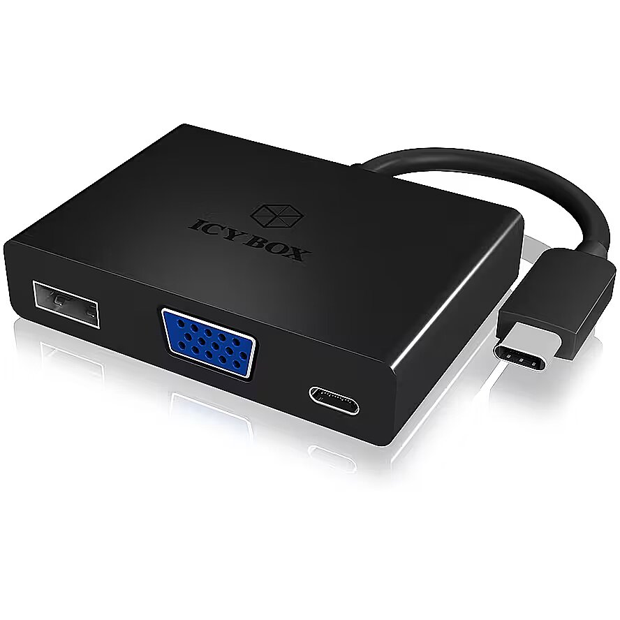 LongSummaryDescription - ICY BOX IB-DK4032-CPD. Host interface: USB Type-C, Output interface: VGA. Product colour: Black, Country of origin: China. Chipset: Parade PS176, VIA-Labs VL210-Q4 QFN-48, Data transfer rate (max): 5 Gbit/s. Windows operating systems supported: Windows 10 Education, Windows 10 Education x64, Windows 10 Enterprise, Windows 10 Enterprise x64,..., Mac operating systems supported: Mac OS X 10.11 El Capitan, Other operating systems supported: ChromeOS. Width: 50 mm, Depth: 69 mm, Height: 15 mm