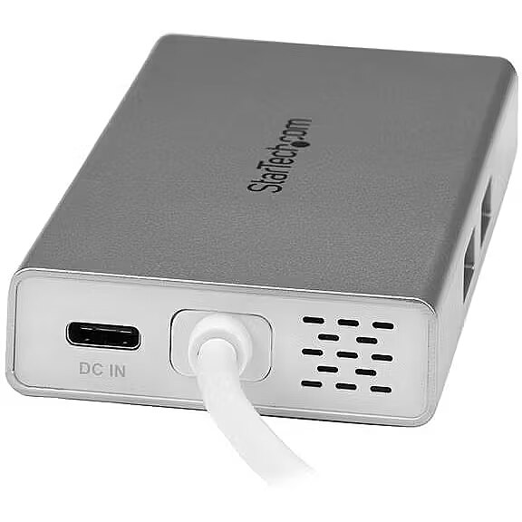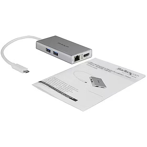 LongSummaryDescription - StarTech.com USB-C Multiport Adapter - USB-C Travel Docking Station w/ 4K HDMI - 60W Power Delivery Pass-Through, GbE, 2pt USB-A 3.0 Hub - Portable Mini USB Type-C Dock for Laptop - White. Connectivity technology: Wired, Host interface: USB 3.2 Gen 1 (3.1 Gen 1) Type-C, USB Power Delivery up to: 60 W. Ethernet LAN data rates: 10,100,1000 Mbit/s, Networking standards: IEEE 802.3, IEEE 802.3ab, IEEE 802.3u. Product colour: Silver, White, Data transfer rate: 5 Gbit/s, Maximum digital resolution: 4096 x 2160 pixels. Power source type: USB, Power supply: 60 W. Windows operating systems supported: Windows 10 Education, Windows 10 Education x64, Windows 10 Enterprise, Windows 10 Enterprise x64,..., Mac operating systems supported: Mac OS X 10.10 Yosemite, Mac OS X 10.11 El Capitan, Mac OS X 10.12 Sierra, Mac OS X 10.13 High..., Other operating systems supported: ChromeOS