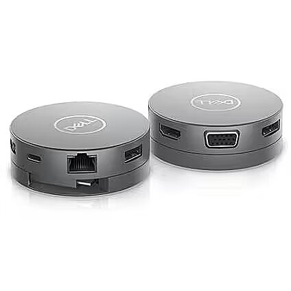 Description - Dell USB-C Mobile Adapter – DA310 Featuring the widest variety of ports available, the compact 7-in-1 Dell USB-C Mobile Adapter – DA310 offers video, network, data connectivity, and up to 90W power pass-through for your laptop. The Dell USB-C Mobile Adapter is a compact and portable multiport 7-in-1 adapter that can connect to just about any device you have. Its downstream USB-C port supports power pass through and is ideal when your laptop does not have any more USB-C charging ports. Widest variety of ports: Featuring the widest range of ports available that includes 2 USB-A ports, 1 USB-C, 1 HDMI, 1 DisplayPort, 1 VGA and 1 RJ-45 port. The mobile adapter offers seamless connectivity to various devices like monitorsi, projectors, headsets, keyboard, mouse, flash drives and other accessories. Multi-functional USB-C port: With a USB-C downstream port that supports power pass through, video and data, you can connect to a monitor at up to 4K resolution at 30Hz, get up to SuperSpeed USB 10Gbps data transfer and 90W power pass throughi to your laptop. Crisp 4K resolution at 60Hz: Connect to high-resolution displays without compromising on performance, as the adapter supports 4K resolution at 60Hzi. Simply connect your monitor or projector to your PC via DisplayPort or HDMI 2.0 port on your adapter. SuperSpeed data transfers: Two USB-A and one USB-C downstream ports let you connect to other supported peripherals and enjoy fast file transfers up to 10 Gbps SuperSpeed
