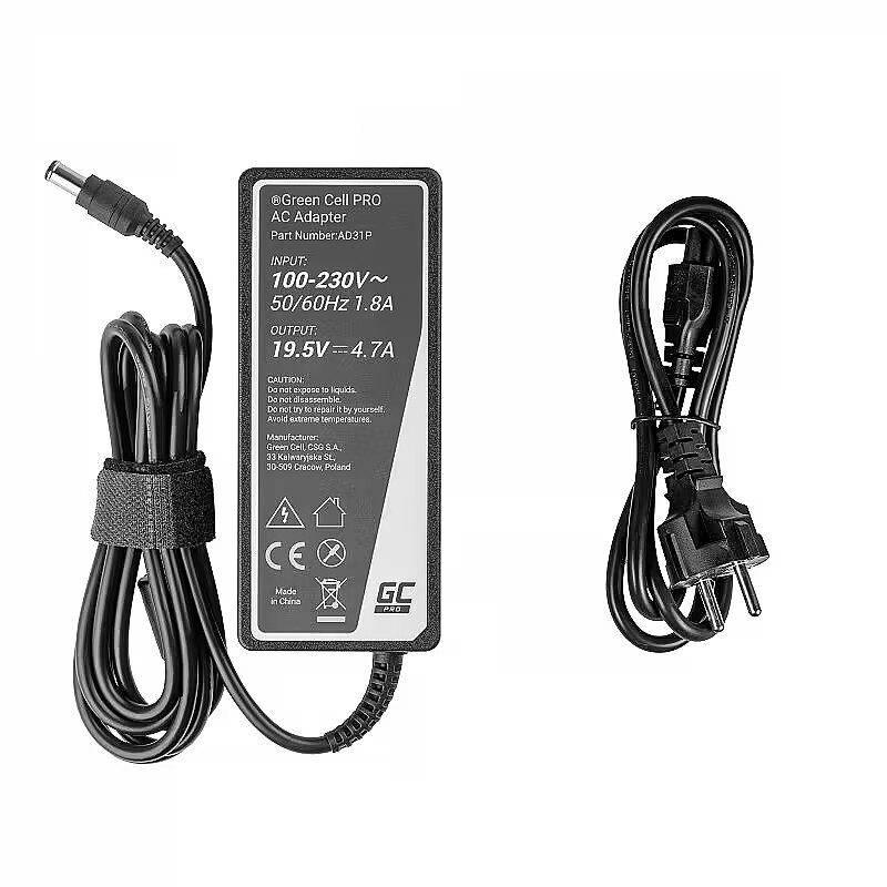 Description - Sony Vaio Laptop Power Supply 19.5V 4.7A 90W Choose reliability The Green Cell PRO charger is the most reliable power source for your laptop. Made with the highest quality materials and electronics so you can be sure it won't fail at an important time. The power supply comes with up to a 3-year warranty. PRO Series Power Supply The Professional Series power supplies are designed to be powerful and durable. They are equipped with a set of electronic protections to ensure precise control of the charging parameters. They will not only charge your laptop quickly, but also safely. Unsurpassed durability Thoughtful design and high quality components contribute to the charger's increased durability. An additional mains filter filters the voltage already at the input of the charger, and a larger heatsink dissipates heat more efficiently so that the charger does not heat up. All of this makes the power pack astonishingly robust and can operate faultlessly for years. Functional and aesthetically pleasing The Green Cell PRO charger is ideal whether you need a second charger for work, for example, or your old one has broken down. It comes with a dedicated power cable for maximum freedom of use. The top quality workmanship of the charger is combined with a modern, aesthetic design. Fresh energy for your laptop With the PRO series charger, your laptop will get a new lease of life and we will take care of the environment. Not only by designing durable equipment that lasts for years, but also by promoting and financing the recovery and recycling of used electronic equipment.