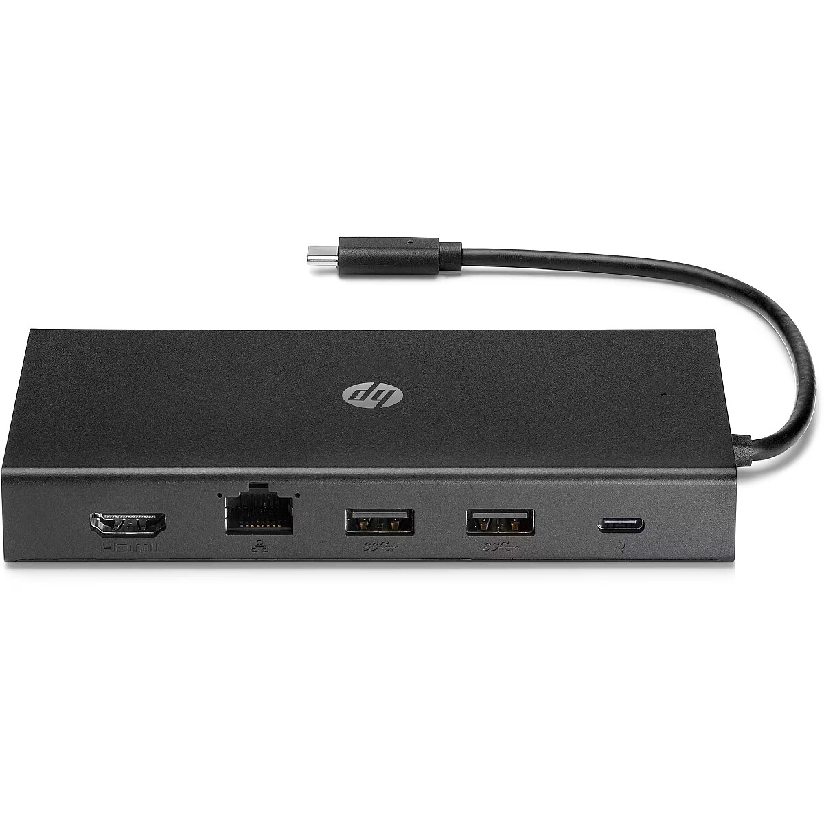 LongSummaryDescription - HP Travel USB-C Multi Port Hub. Connectivity technology: Wired, Host interface: USB 3.2 Gen 1 (3.1 Gen 1) Type-C. Ethernet LAN data rates: 10,100,1000 Mbit/s. Product colour: Black, Compatible memory cards: MicroSD (TransFlash), SD, Country of origin: China. Windows operating systems supported: Windows 10, Windows 11, Other operating systems supported: ChromeOS. Width: 140 mm, Depth: 70 mm, Height: 20 mm