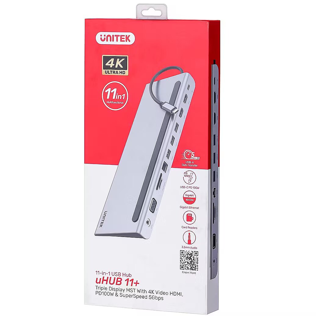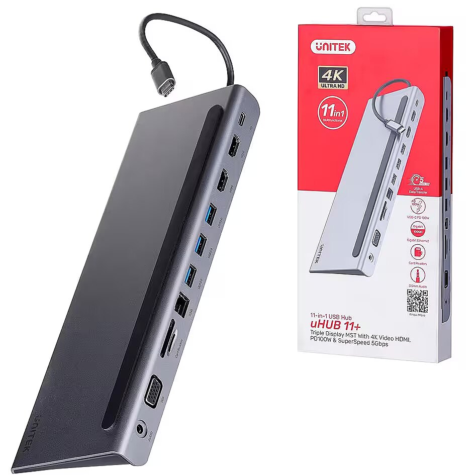 Unitek Hub USB 11 w 1, USB-C, RJ45, MST, 100W PD
