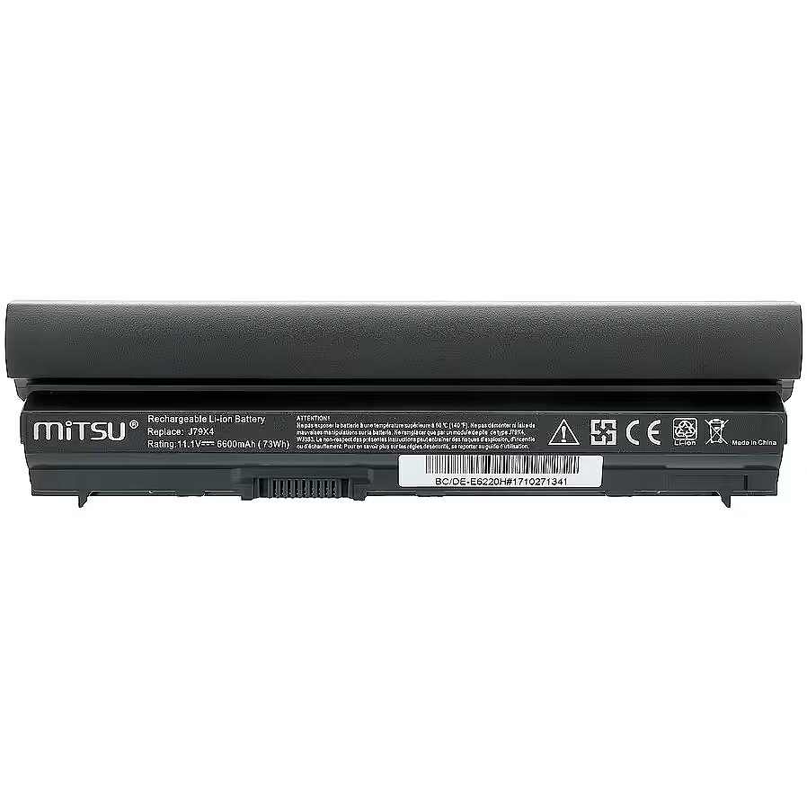 Description - Mitsu Battery for Dell Latitude E6220, E6320 6600 mAh (73 Wh) 11.1 - 10.8 Volt - 5BM245 High quality at a reasonable price, safety and ecology are the features of MITSU batteries that have already been appreciated by thousands of Europeans, mainly in Poland, the Czech Republic and Slovakia. It is the result of combining the best components with attention to every stage of the production process, supported by constant quality control, as well as an emphasis on device safety. MITSU is: High-end, proven, ecological class A lithium-ion cells Actual declared capacity Much slower decline in nominal capacity compared to other cheaper alternatives Low susceptibility to spontaneous discharge No memory effect Factory protections against overcharge and deep discharge, as well as against overvoltage OVP, overheating OTP, SCP short circuit and OCP current overload Reliable and long-lasting time between recharges 6-step quality control.   By buying this laptop battery, you can also be sure that you care for the environment at the same time. The manufacturer closely cooperates with organizations dealing with broadly understood environmental education, supporting selective collection and maximum recovery of waste. MITSU batteries are CE, ROHS and ISO9001 certified products. Replaces batteries: 0F7W7V, 0FRR0G, 11HYV, 312-1239, 312-1241, 312-1379, 312-1379 , 312-1380, 312-1381, 312-1446, 3W2YX, 451-11702, 451-11703, 451-11703, 451-1441 11978, 451-11979, 451-11980, 5x317, 62cg8, 7FF1K, 7M0N5, 823F9, 9GXD5, 9p0W6, CPXG0, CWTM0, F7W7V, FHHVX, FN3PT, FRR0G, FRROG, GYKF8, HGKH0, JN0 K4CP5, K94X6, KFHT8, MHPKF, MPK22, NGXCJ, PHRG, R8R6F, RCG54, RFJMW, RXJR6, TPHRG, V7M6R, WJ38, WJ383, WRP9M, Y0WYY, Y40R5, Y61CV, YJNKK, Model BC/DE-E6220H Fits: Dell latitude series E5220, E6120, E6220, E6230, E6320, E6320XFR, E6330, E6430S, XPS series 16 (1647)