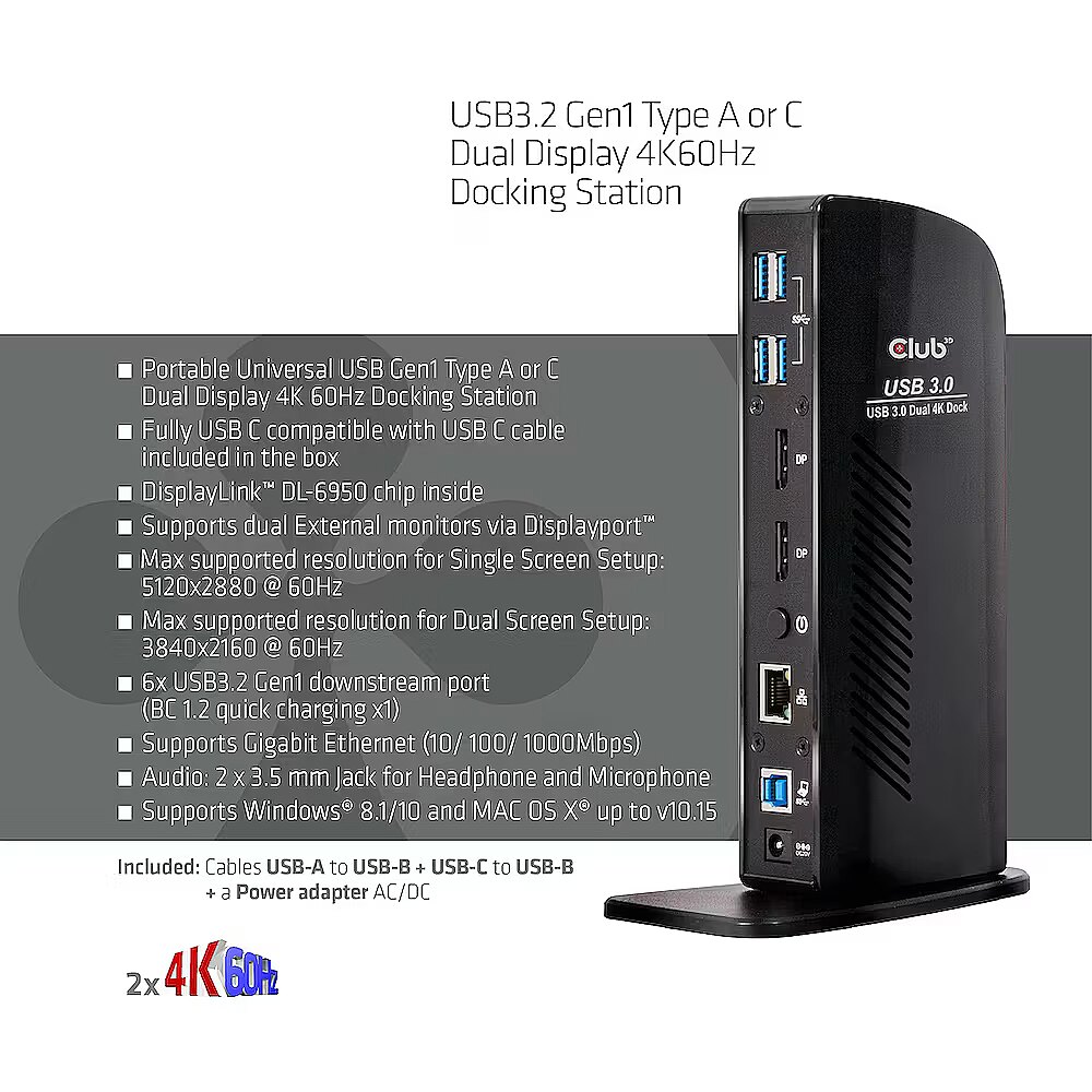 Vendor Homepage - https://www.club-3d.com/en/detail/2423/usb3.2_gen1_type_a_or_c_dual_display_4k60hz_docking_station/