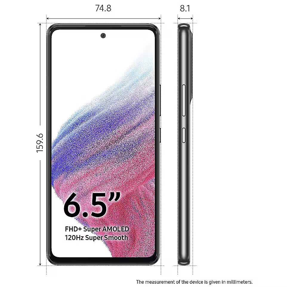Samsung | Galaxy | A53 A536 | Awesome Black | 6.5 " | Super AMOLED | 1080 x 2400 | Internal RAM 6 GB | 128 GB | Dual SIM | Nano-SIM | 4G | 5G | Main camera resolution 64+12+5+5 MP | Secondary camera resolution 32 MP | Android | 12