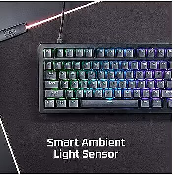 An integrated ambient light sensor detects the brightness of the surrounding environment and automatically adjusts the keyboard lighting according to your preferences, which can be configured using HyperX NGENUITY software.