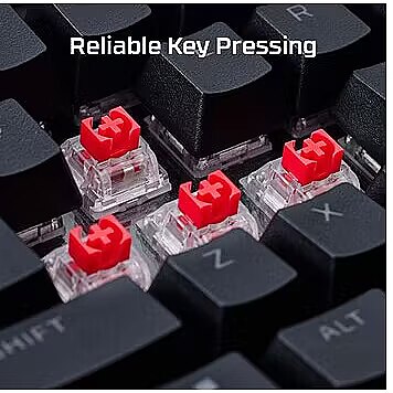 HyperX Linear Switches provide excellent stability thanks to a POM stem with half-walls. These switches are rated for up to 80 million keystrokes and come with pre-installed HyperX PBT Keycaps.