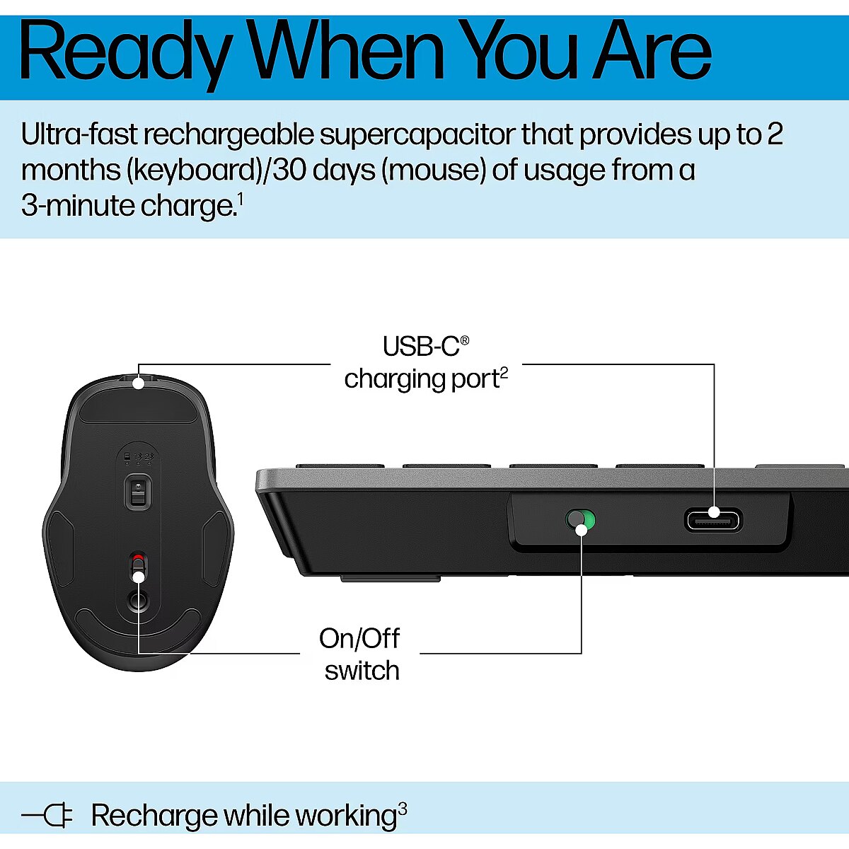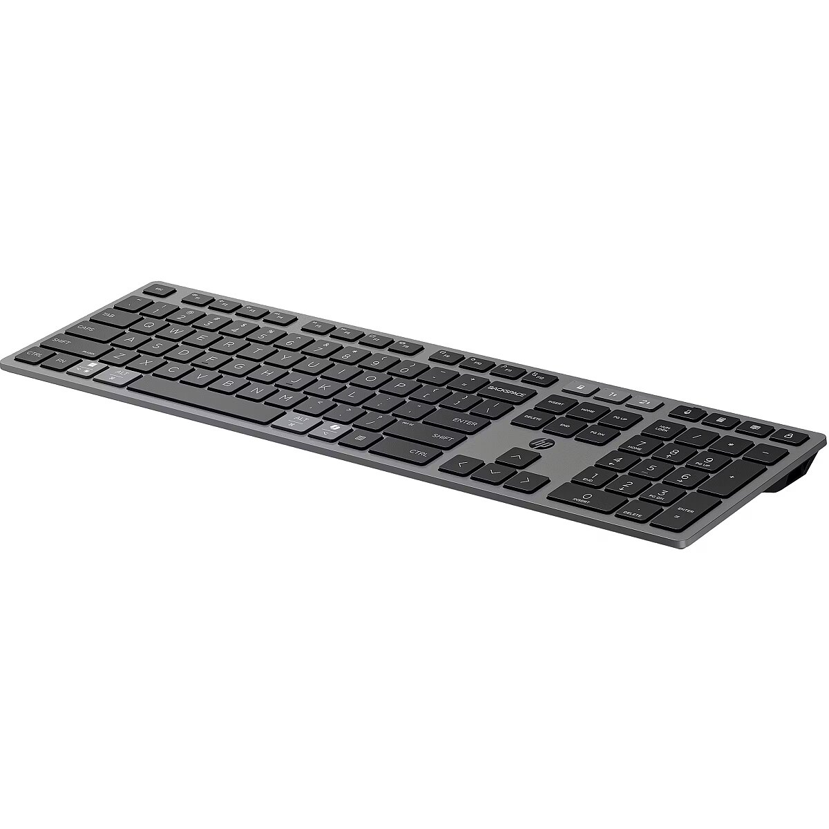 ShortSummaryDescription - HP 725 Multi-Device Rechargeable Wireless Keyboard, Full-size (100%), Wireless, RF Wireless + Bluetooth, Black