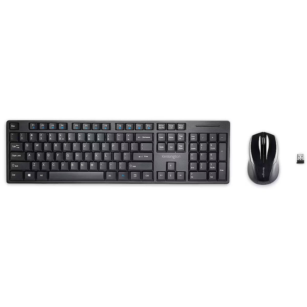 LongDesc - The Kensington Pro Fit® Low-Profile Wireless Desktop Set is a reliable solution for the professional workstation. Providing a full-size, spill-proof keyboard with multimedia keys, a comfortable ambidextrous mouse and AES encryption, the Pro Fit Low-Profile Wireless Desktop Set supports a clutter-free and secure workstation.Low-profile, full-size keyboard provides multimedia keys for enhanced productivity and quick access to frequently used applications and filesAmbidextrous mouse is designed to provide all-day comfort for the right or left hand and provides an optical sensor with 1200 DPI for precise control2.4GHz USB receiver provides a reliable wireless connection up to 10 metres for the keyboard and mouseProfessional design offers smooth, low-profile keys to make typing more efficient and comfortableSecure wireless connection protects sensitive data from potential hackers using AES 128-bit encryption technologySpill-proof keyboard resistant to coffee, water and other liquidsPlug & Play allows you to plug the receiver into your computer’s USB port and immediately start using your keyboard and mouseOptimised for your Windows 11 keyboard and mouse needs.