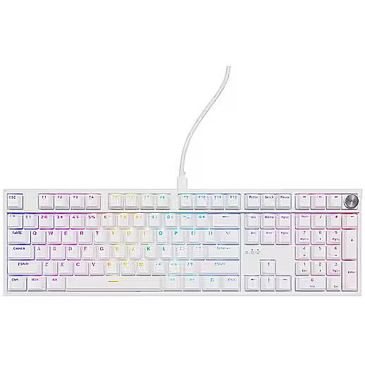 Desc - Pieslēguma tips: Vada, Kategorija: Datorspēlēm, Savienošana ar datoru: USB, Apgaismojums taustiņiem: Ir, Valodas: ENG, Komplektācija: Klaviatūra, Krāsa: Balta, Garantija: 2 gadi