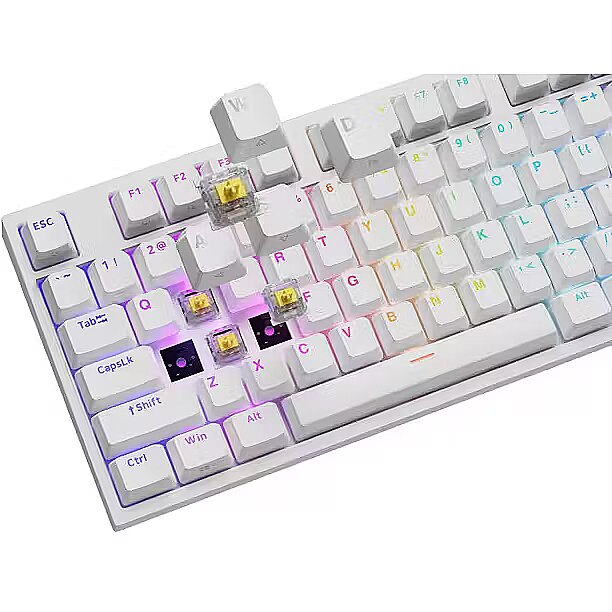ShortDescription - klawiatura mechaniczna | Qwerty | USB | 11 klawiszy multimedialnych | podświetlenie RGB | Gateron Yellow Pro | Hot-Swap | biała