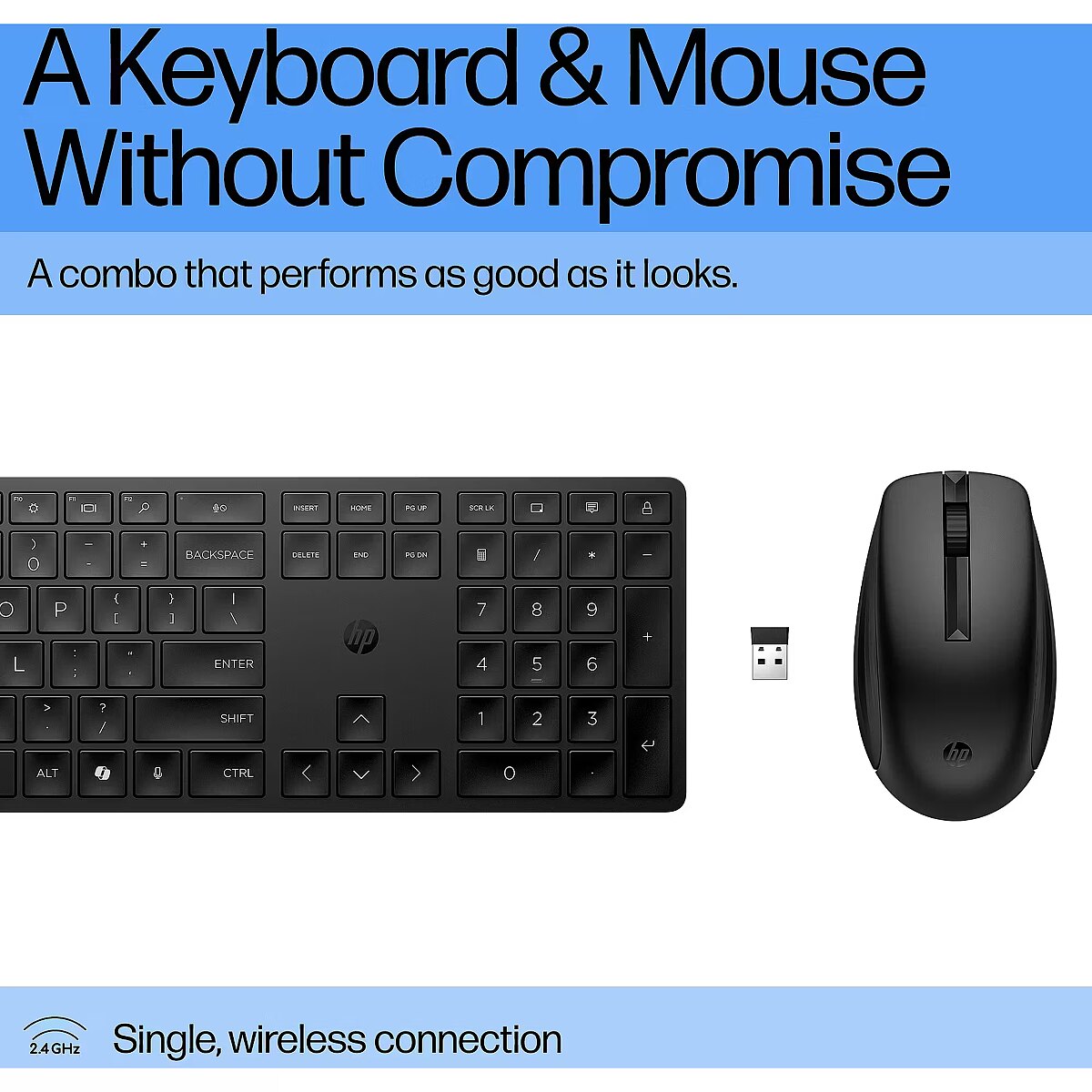 ShortSummaryDescription - HP 655 Wireless Keyboard and Mouse Combo, Full-size (100%), Wireless, RF Wireless, Black, Mouse included