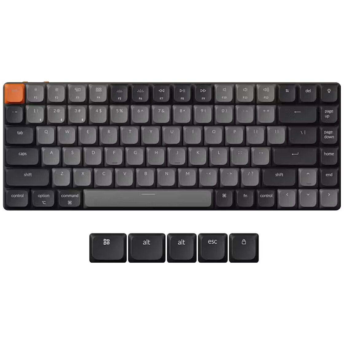 Summary - Keychron K3. Keyboard form factor: 75%, Connectivity technology: Wired & Wireless, Device interface: USB + Bluetooth, Keyboard key switch: Mechanical, Keyboard layout: QWERTY, Keyboard number of keys: 84. Backlight type: RGB LED. Recommended usage: Universal. Product colour: Grey