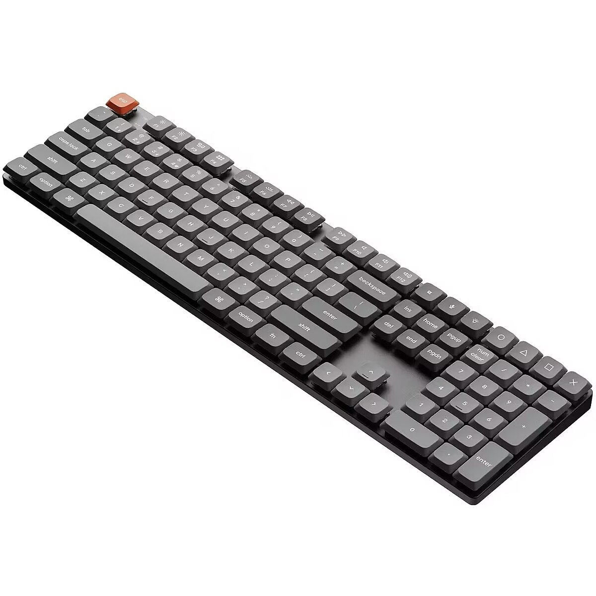 Summary - Keychron K5 Max. Keyboard form factor: Full-size (100%). Keyboard style: Straight. Connectivity technology: Wired & Wireless, Device interface: USB + RF Wireless + Bluetooth, Keyboard key switch: Mechanical, Keyboard number of keys: 108. Backlight type: RGB LED. Recommended usage: Universal. Product colour: Black, Grey
