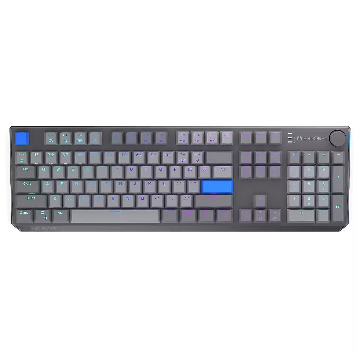 Summary - ENDORFY Thock V2. Keyboard form factor: Full-size (100%). Keyboard style: Straight. Connectivity technology: Wired & Wireless, Device interface: USB + RF Wireless + Bluetooth, Keyboard key switch: Mechanical, Keyboard layout: QWERTY, Keyboard number of keys: 104. Backlight type: RGB LED. Cable length: 1.8 m. Recommended usage: Gaming. Product colour: Grey