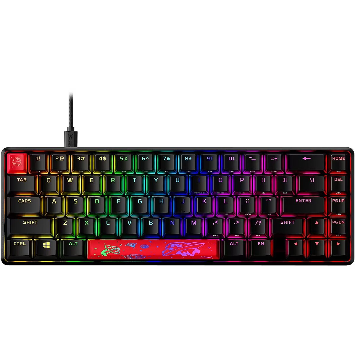LongDesc - Brilliantly CompactThe HyperX Alloy Origins 65 is a balanced keyboard which blends compactness and functionality, but compromises nothing. A 65% form factor makes it more compact than a tenkeyless keyboard, while still offering arrow keys. With a durable, full aluminum body, and balanced HyperX switches rated to withstand 80 million keypresses, it’s as reliable as it is compact. The stock double shot PBT keycaps have the keys’ secondary functions printed on them so you can quickly locate any additional functionality you need. Let your style shine bright with the HyperX switches’ exposed LED design, and stunning lighting effects. Further customize your keyboard with macros, personalized lighting profiles, and more with HyperX NGENUITY software.