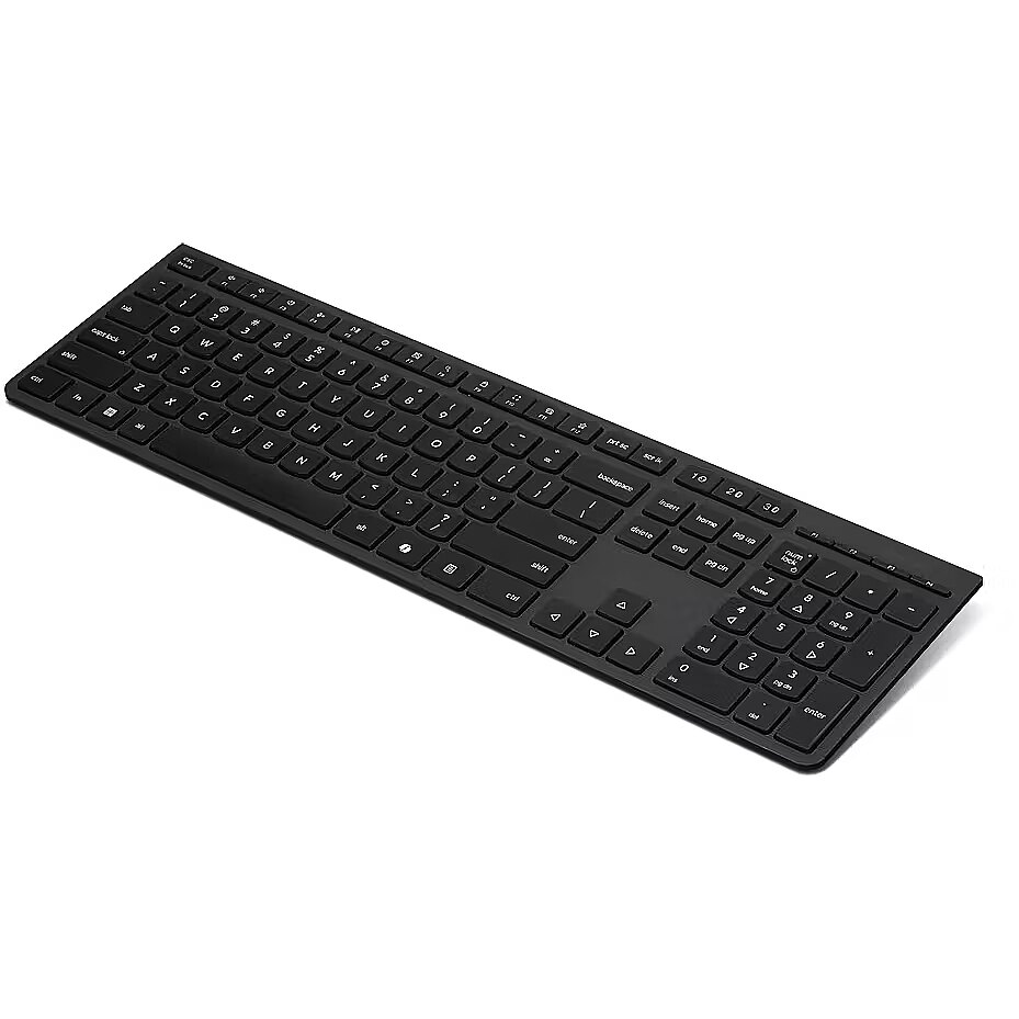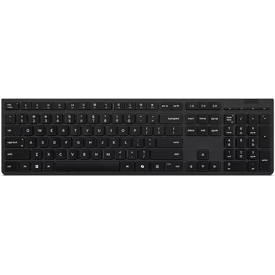 LongDesc - The Lenovo Professional Wireless Rechargeable Keyboard, its full-size keyboard sports scissor switches that create an elevated typing experience and improves your working efficiency with specialized Microsoft Copilot Key. Plus, its covers are made from eco-friendly 65% recycled material that protects the environment.