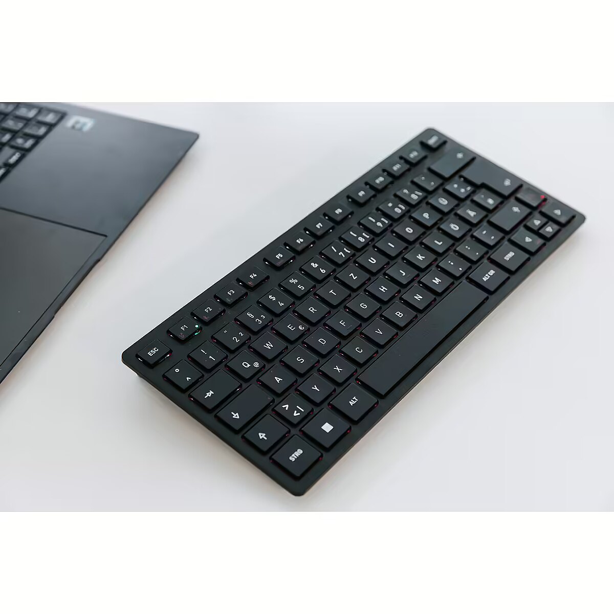 LongDesc - Rechargeable multi-device compact keyboard with 2.4 GHz wireless, Bluetooth® 5.0 and cable connection