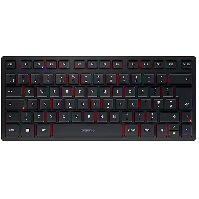 LongSummaryDescription - CHERRY KW 9200 MINI. Keyboard form factor: 75%. Keyboard style: Straight. Connectivity technology: Wired & Wireless, Device interface: USB + RF Wireless + Bluetooth, Keyboard key switch: Scissor key switch, Keyboard layout: QWERTY, Keyboard number of keys: 79, Recommended usage: Universal. Product colour: Black