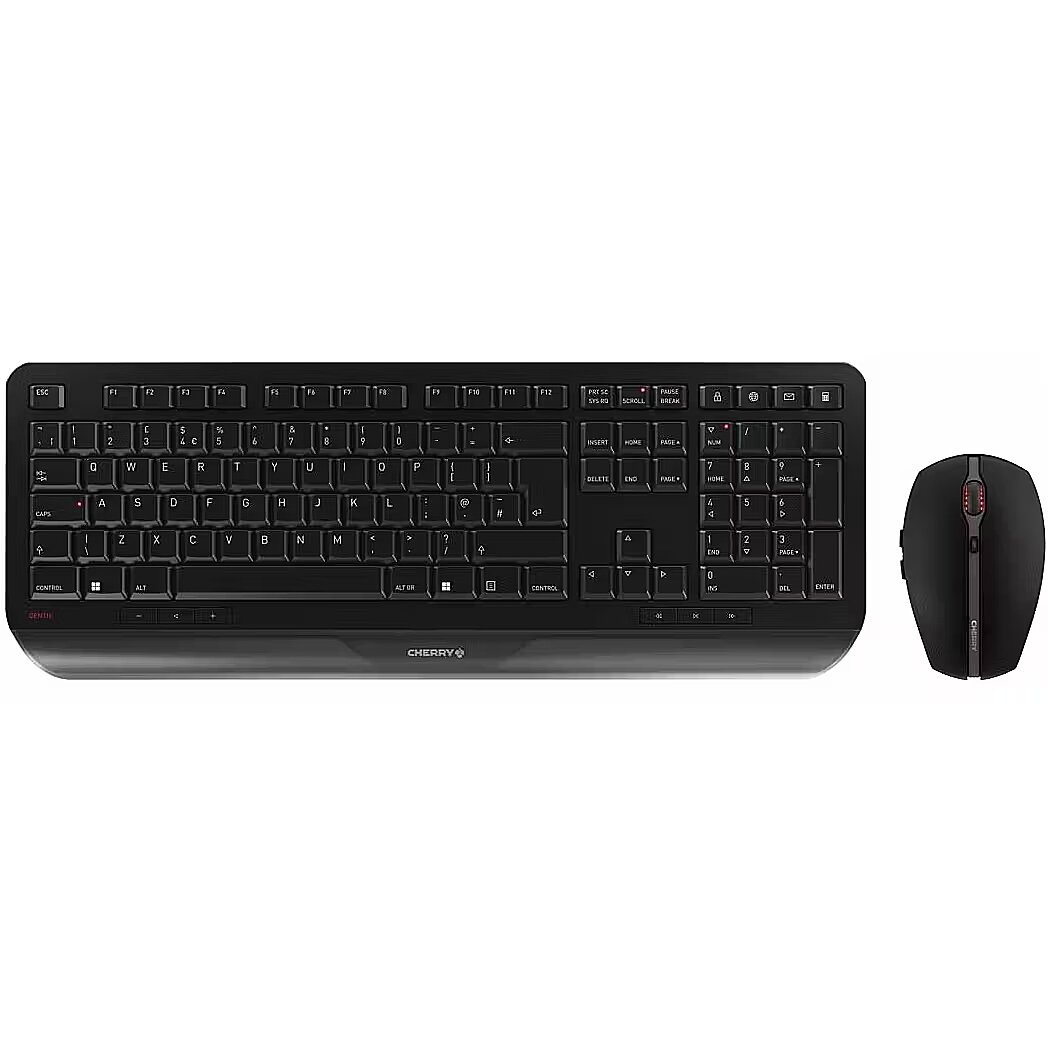 LongSummaryDescription - CHERRY GENTIX DESKTOP. Keyboard form factor: Full-size (100%). Keyboard style: Straight. Connectivity technology: Wireless, Device interface: RF Wireless, Keyboard layout: QWERTY, Keyboard number of keys: 115. Wrist rest. Recommended usage: Home/Office. Product colour: Black. Mouse included