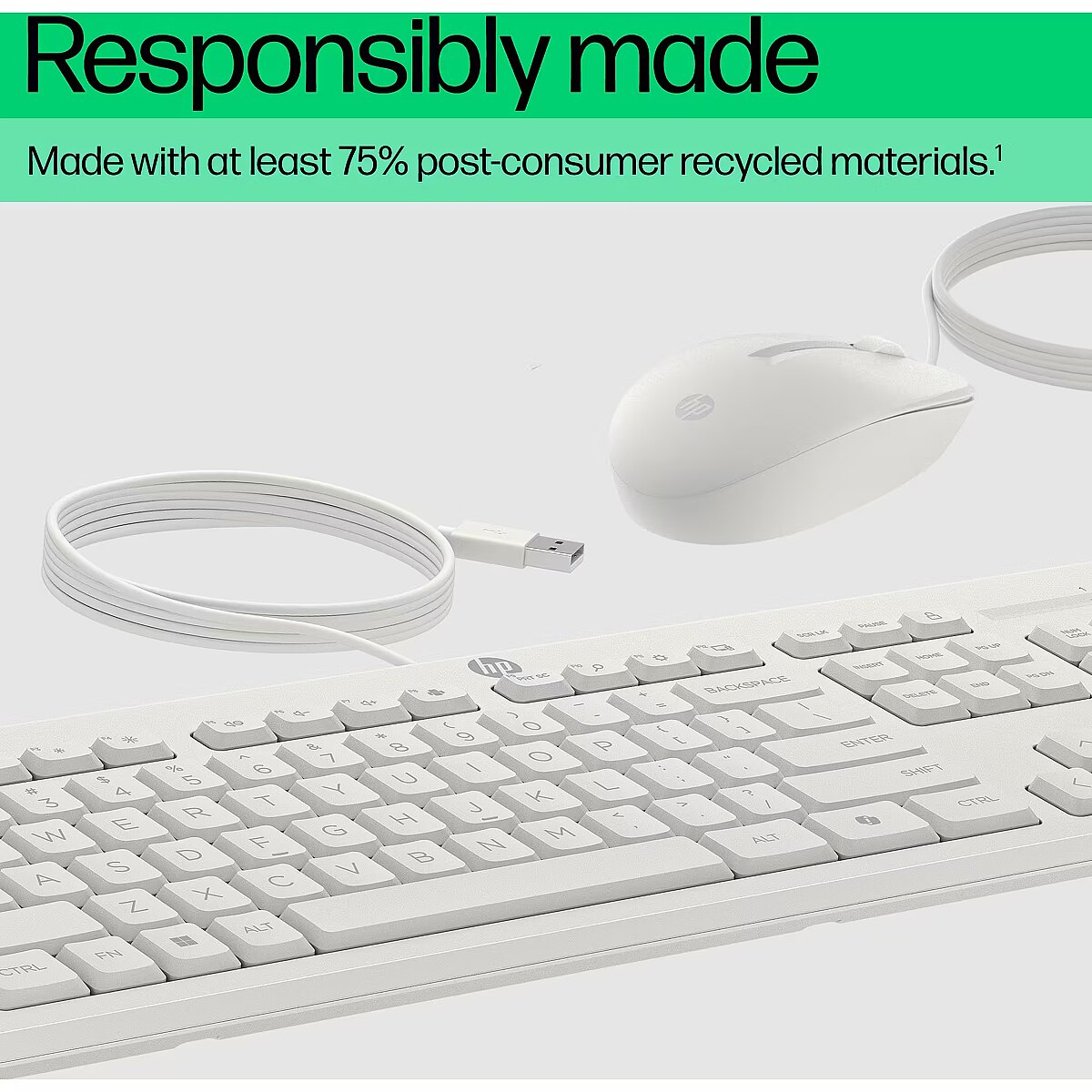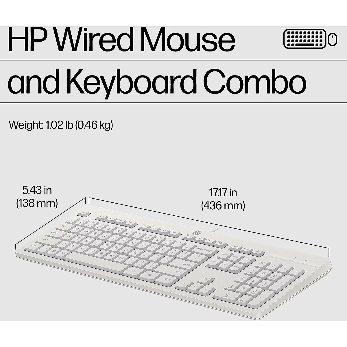 ShortSummaryDescription - HP 225 Wired Mouse and Keyboard Combo, Full-size (100%), Wired, USB, White, Mouse included